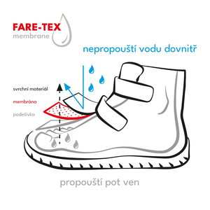 Boty s membránou FARE-TEX jsou ideální volbou, pokud chcete, aby nohy vašich dětí zůstaly v suchu a pohodlí po celý den.