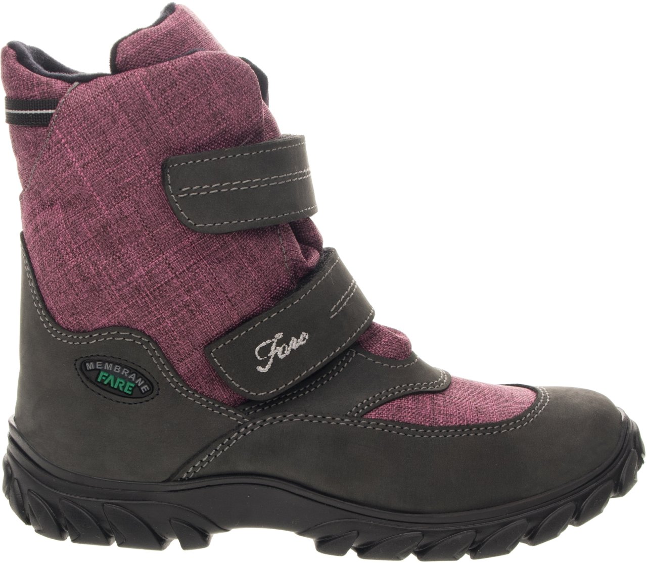 kotníčková obuv s membránou (FARE-TEX) a se zapínáním na suchý zip. Vrchový materiál: hovězí useň broušená (nubuk) v kombinaci s textilem. Podšívka je