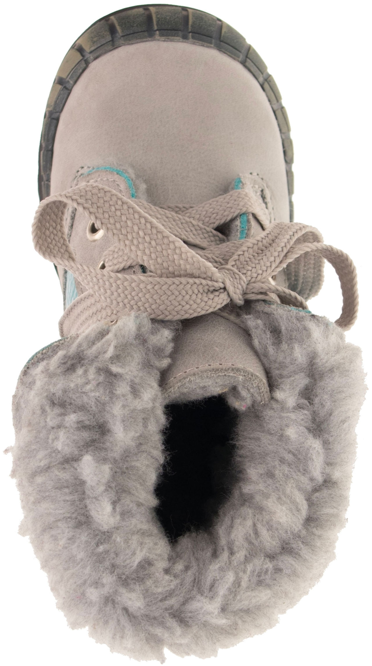 Pevná, zimní kotníčková obuv, šněrovací. Vrchový materiál - pravá kůže hladká . Podšívka je zimní s hřejivým, středně dlouhým vlasem, ohrnutím límečku nahoru se hřejivá plocha ještě zvětší. Podešev je z termoplastického kaučuku, jehož složení splňuje parametry pro používání v zimním období. Předností je vyjímatelná vkládací stélka a pevný opatek i špice.
