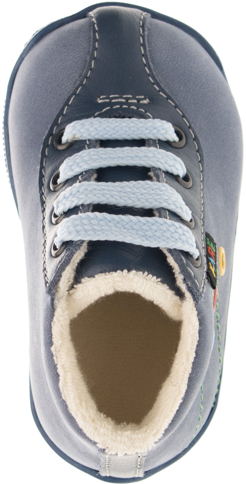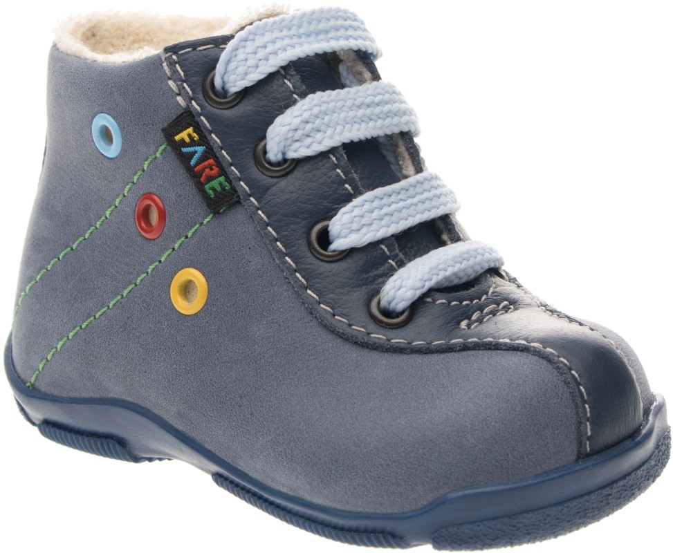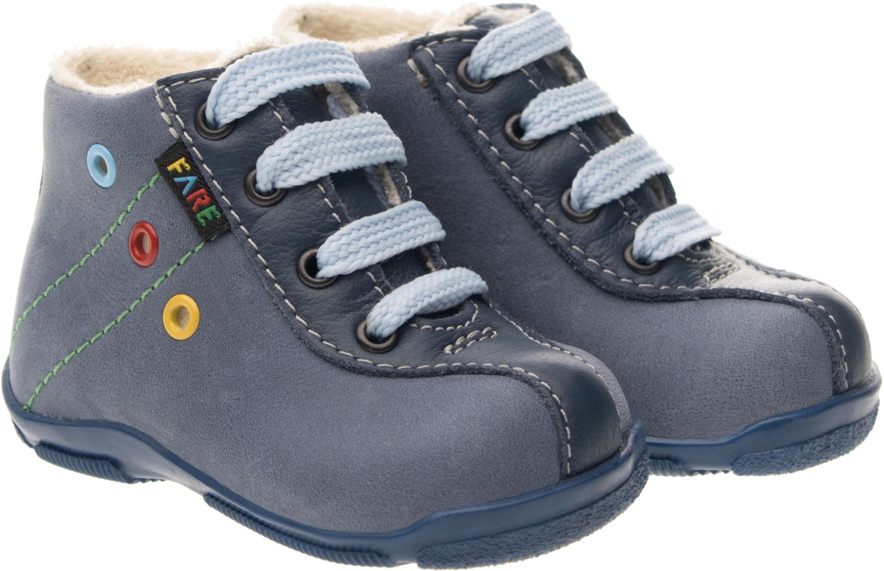 Lehká, kotníčková obuv, šněrovací, maximálně ohebná, určená pro první dětské krůčky, kdy si dítě začíná zvykat na pevnou obuv.Vrchový materiál - pravá kůže hladká. Podšívka - bavlněné froté. Předností je vyjímatelná vkládací stélka a pevný opatek. Podešev je z termoplastického kaučuku, lehká, ohebná, ve špici a v patě vyvýšená.