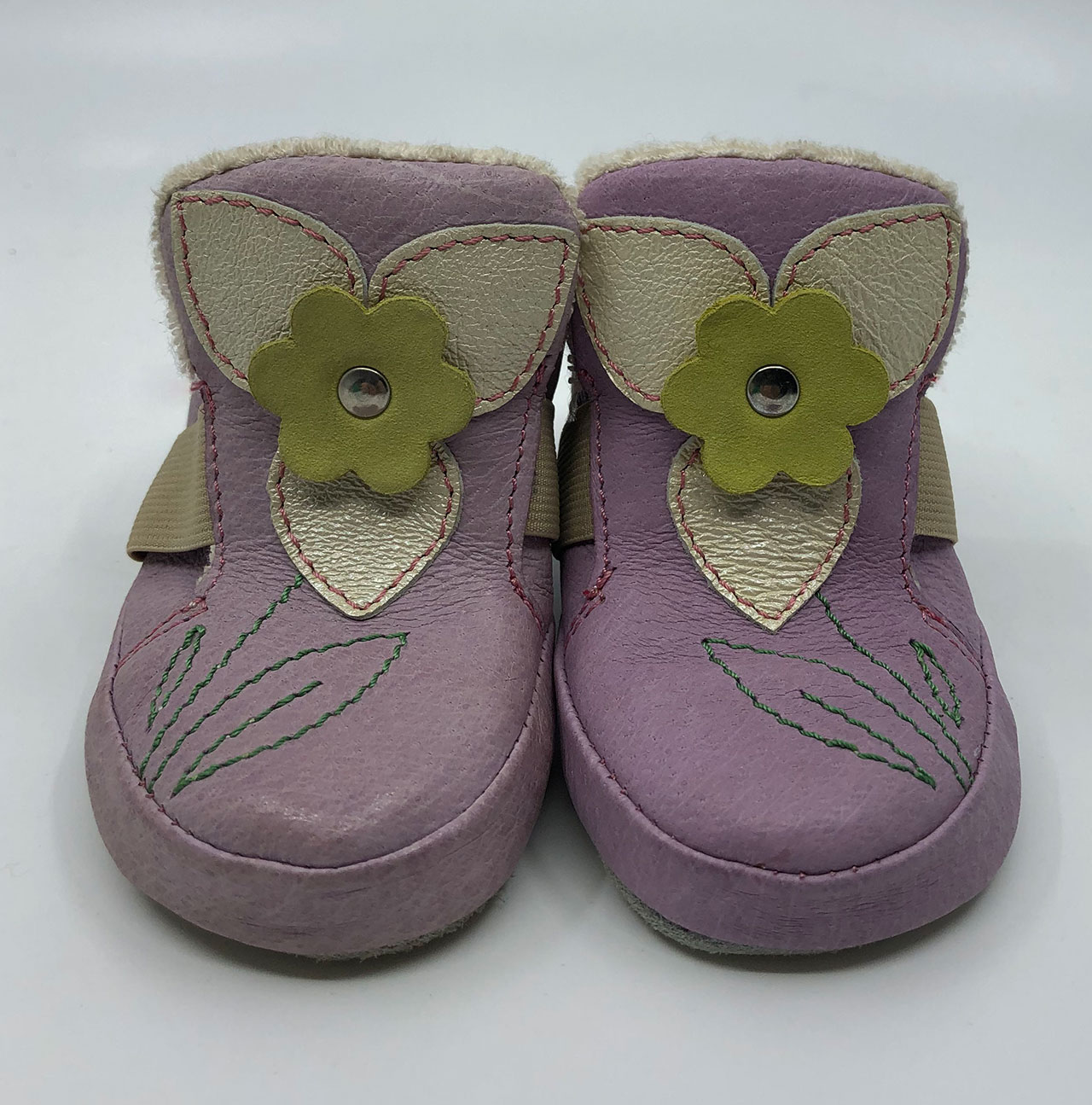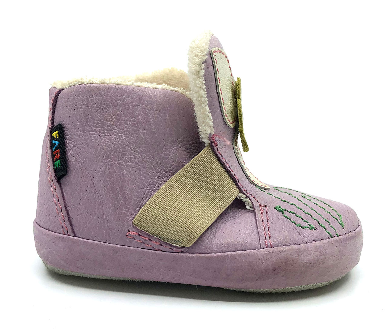 Lehká, kotníčková obuv, maximálně ohebná, určená pro první dětské krůčky, kdy si dítě začíná zvykat na pevnou obuv.Vrchový materiál – pravá kůže, lícová. Podšívka - bavlněné froté. Předností je vyjímatelná vkládací stélka. Podešev je z přírodní štípenky, obuv je určena do interiérového prostředí.