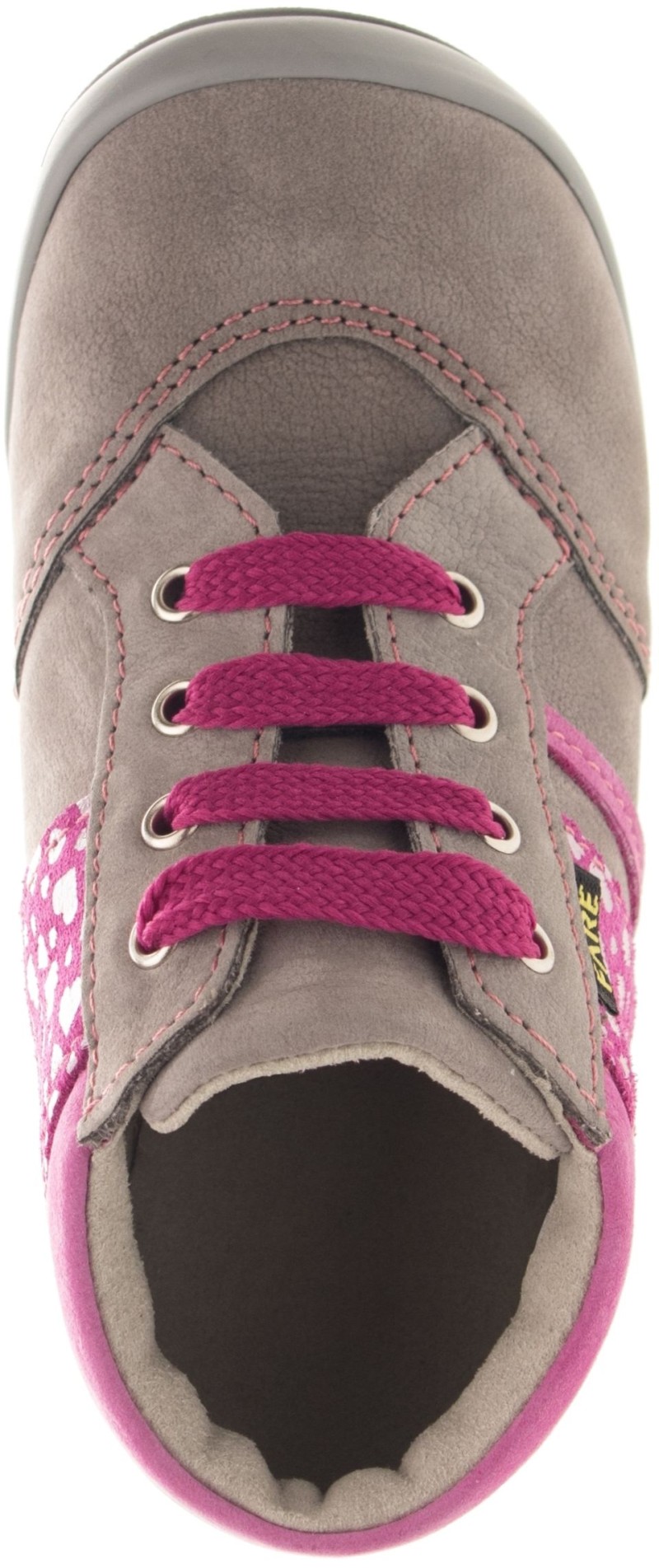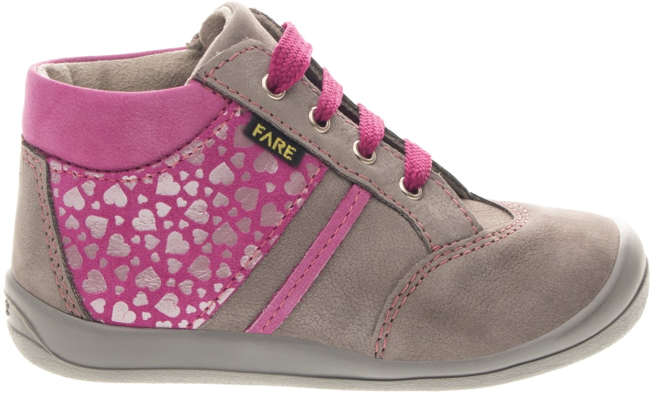 Pevná, kotníčková obuv, šněrovací. Vrchový materiál - broušená kůže nubuk v kombinaci s kůží hladkou. Podšívka - netkaná textilie. Podešev je z termoplastického kaučuku s módní povrchovou úpravou. Předností je vyjímatelná vkládací stélka a pevný opatek i špice.