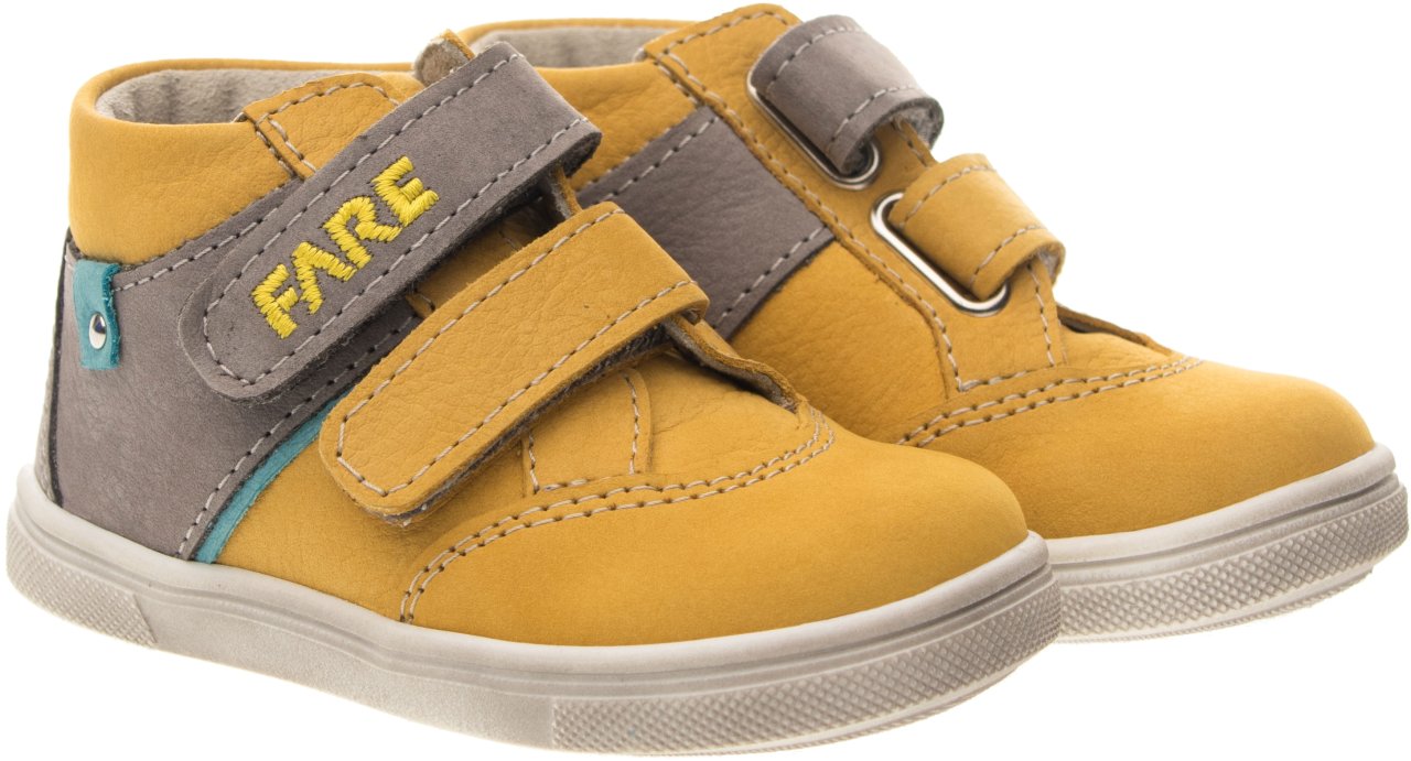 Pevná, kotníčková obuv, na velcro. Vrchový materiál - nubuk. Podšívka - netkaná