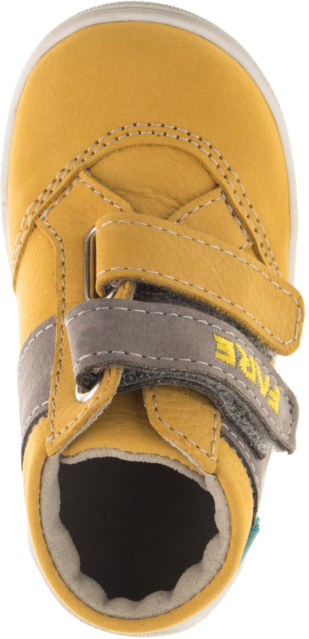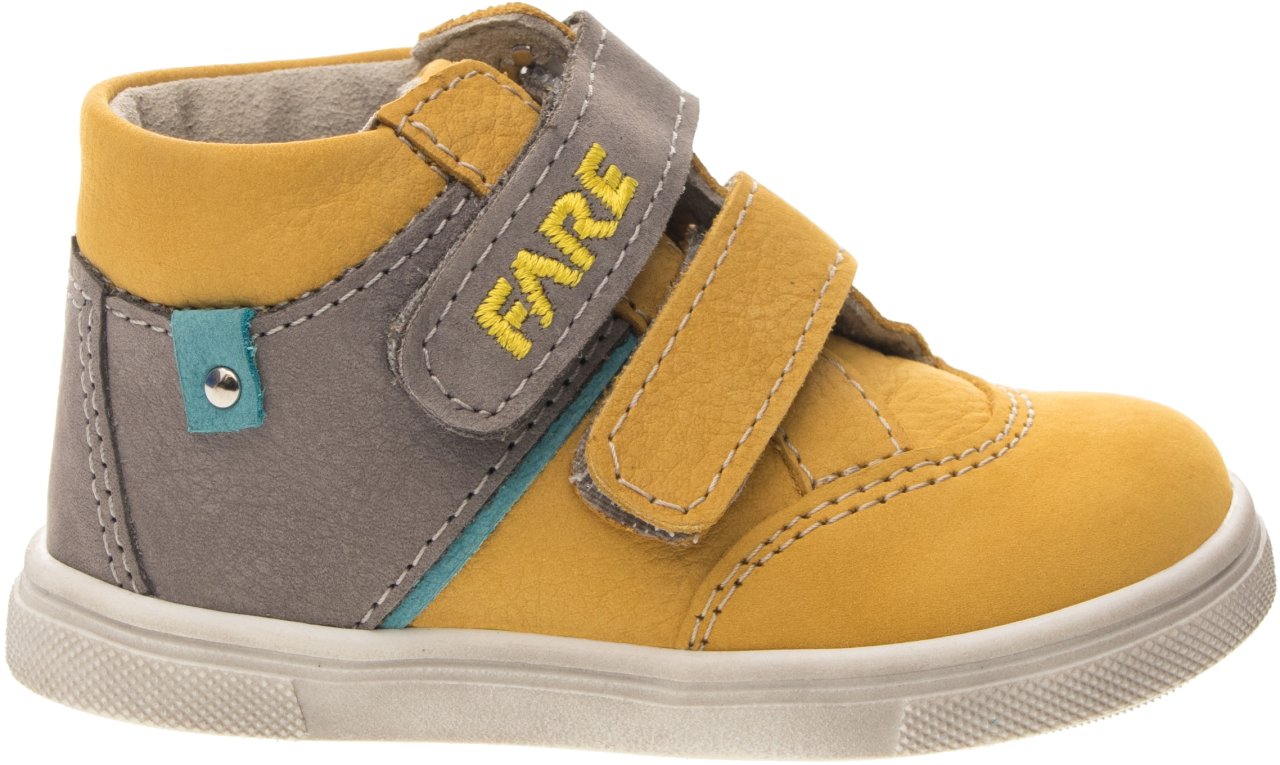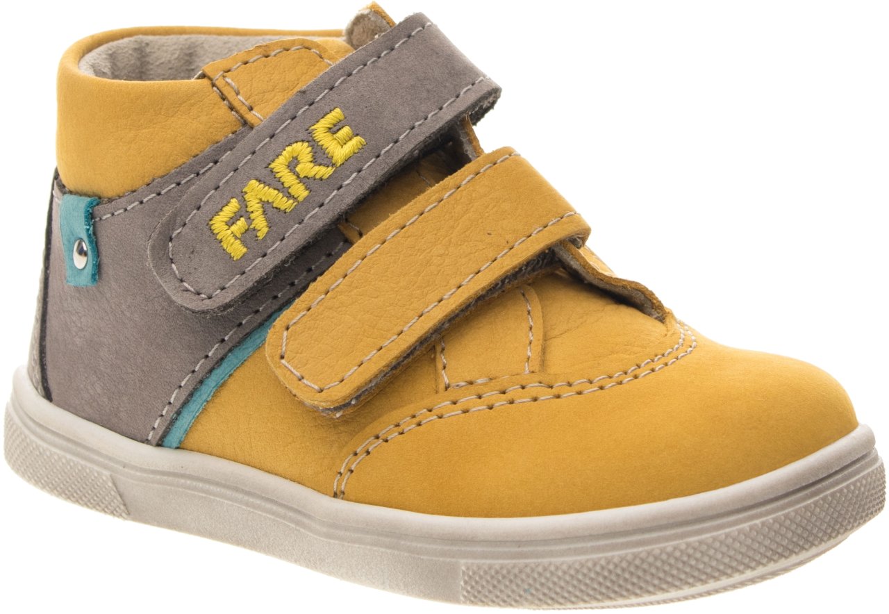 Pevná, kotníčková obuv, na velcro. Vrchový materiál - nubuk. Podšívka - netkaná