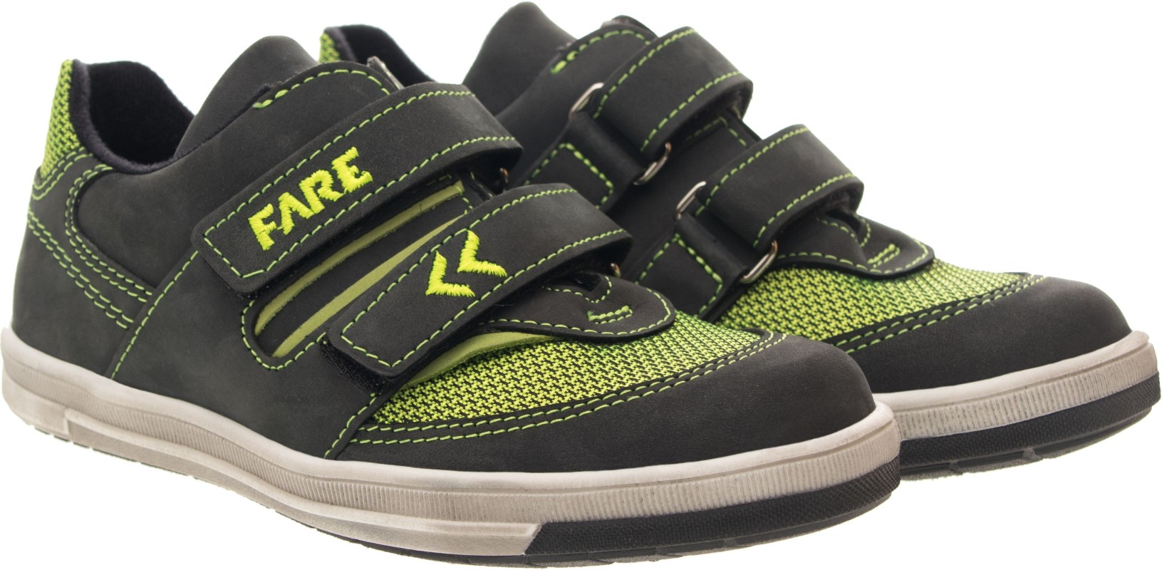Celoroční vycházková obuv FARE-TEX nízká se zapínáním na suchý zip, opatřená membránou. Vrchový materiál: přírodní hovězinová useň broušená (nubuk) v kombinaci s textilem. Podšívka je z textilního materiálu s výbornými sacími vlastnostmi. Podešev je z termoplastického kaučuku s módním dezénem a zvednutou špicí. Obuv má pevný opatek i špici, předností je vyjímatelná vkládací stélka.