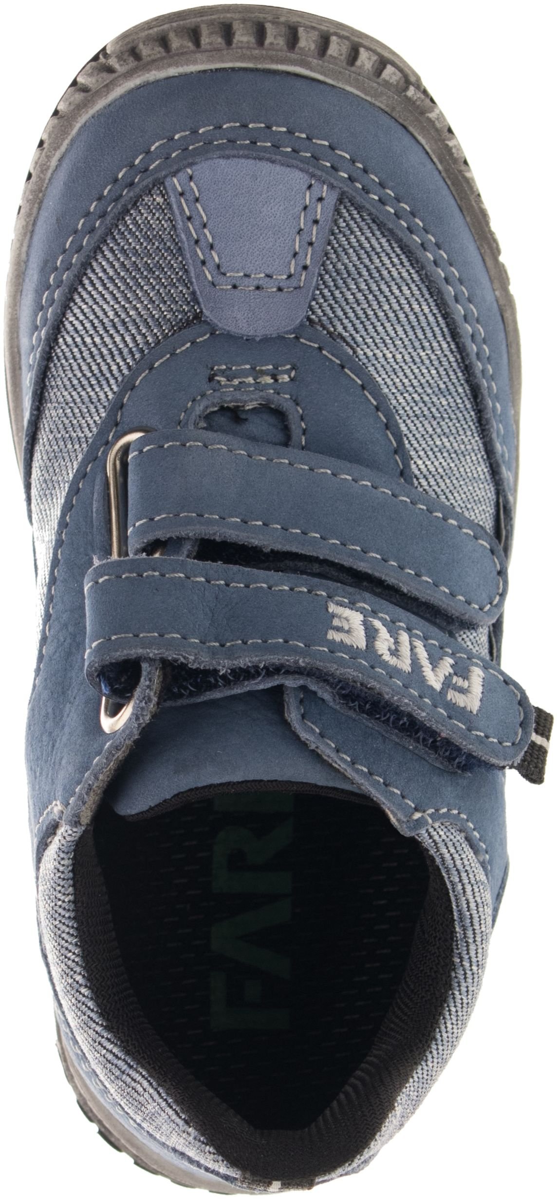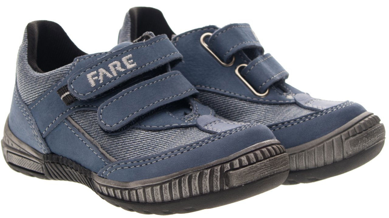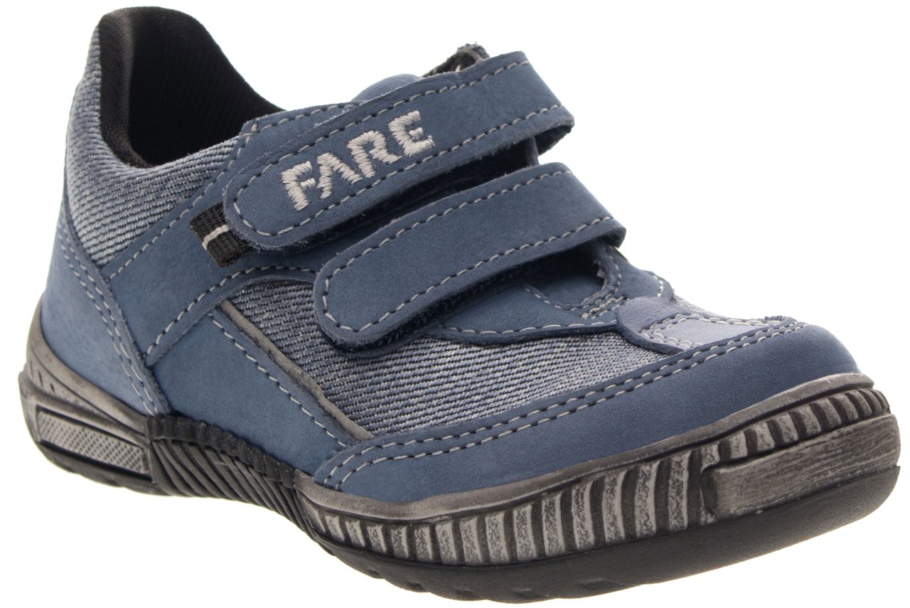 Celoroční vycházková obuv FARE-TEX nízká, se zapínáním na suchý zip, opatřená membránou. Vrchový materiál: přírodní hovězinová useň broušená (nubuk) v kombinaci s textilem. Podšívka je z textilního materiálu s výbornými sacími vlastnostmi. Podešev je z termoplastického kaučuku s módním dezénem a zvednutou špicí. Obuv má pevný opatek i špici, předností je vyjímatelná vkládací stélka.