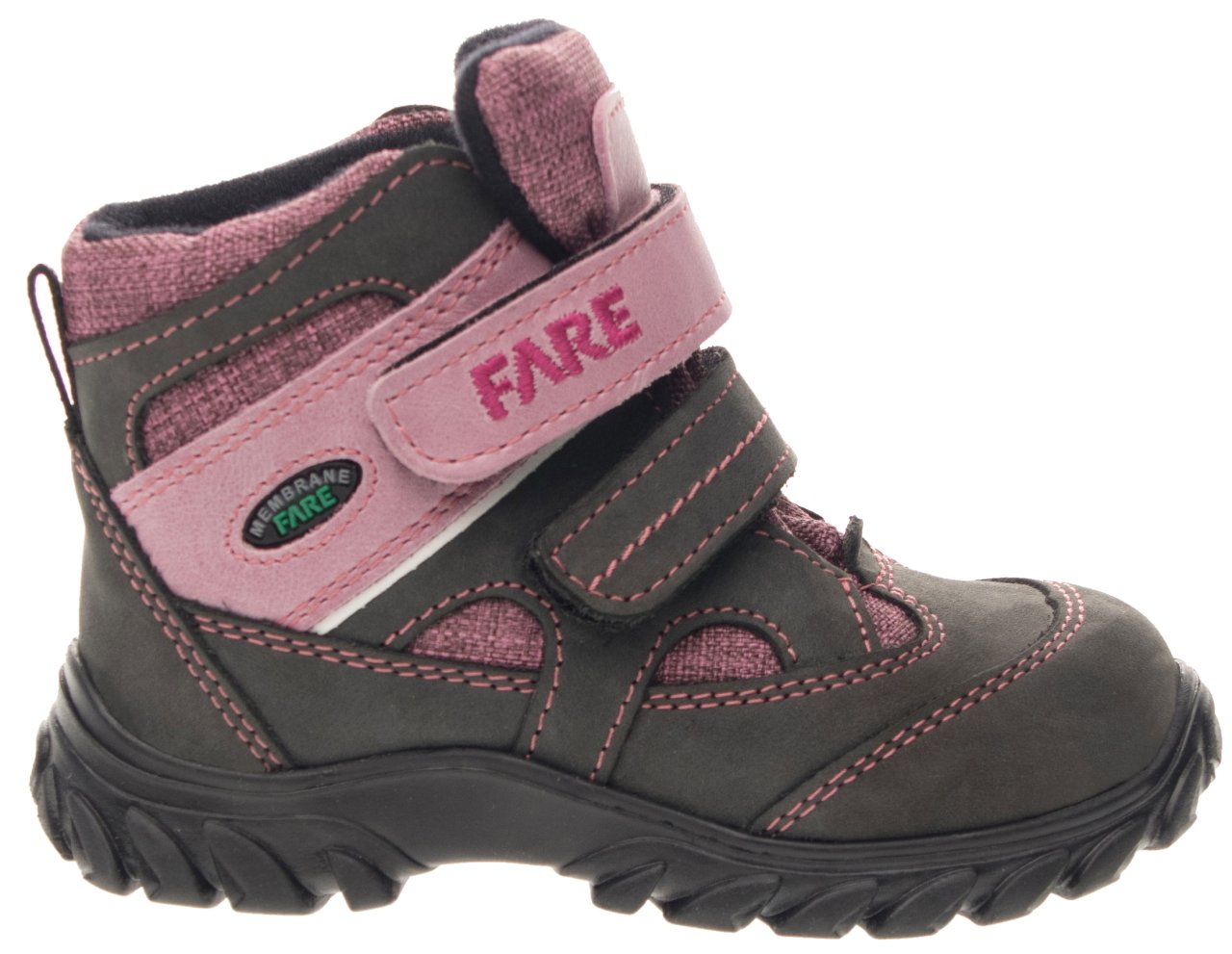 Celoroční, treková, kotníčková obuv, zapínání na velcro pásky. Vrch je z hovězinového nubuku v kombinaci s textilem, vnitřek obuvi je z textilního podšívkového materiálu s výbornými sacími schopnostmi. Díky speciální membráně, která je mezi vrchem a podšívkou, zůstává noha suchá a dobře klimatizovaná. Podešev je z termoplastického kaučuku s módním dezénem, vyvýšená část podešve v přední části chrání špici při běžném zakopávání. Předností je bandážování kotníků a límečku, vyjímatelná vkládací stélka a pevný opatek i špice. Obuv je opatřena nástřikem proti nasákavosti vody.