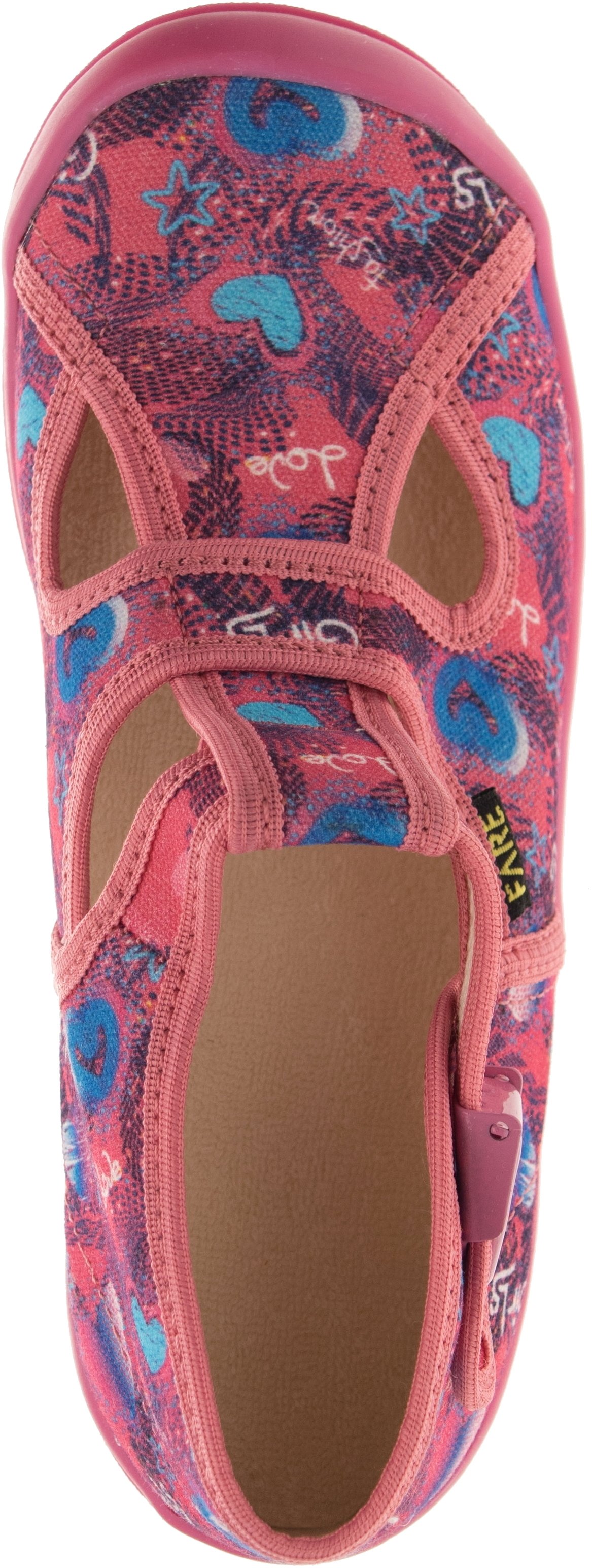 Přezůvková, kotníčková, textilní, lemovaná obuv, na přezku. Materiál svršku je z barevného pracího kordu, vnitřek je z bavlněného kepru. Podešev je vyvinuta jako odlehčená, materiál podešve z termoplastického elastomeru, je neklouzavá pro všechny běžně používané podlahoviny. Tato domácí a přezůvková obuv odpovídá ortopedickým požadavkům a zásadám zdravého obouvání. Obuv je v prstové části prostorově vytvarována, je vybavena pevným opatkem tak, jako je běžné u kvalitní celokožené obuvi. Vkládací stélka je vybavena komfortní tlumící vrstvou. Obuv je designována v souladu nejmodernějšími módními trendy, včetně podešve, která chrání přední část před rychlým opotřebením.