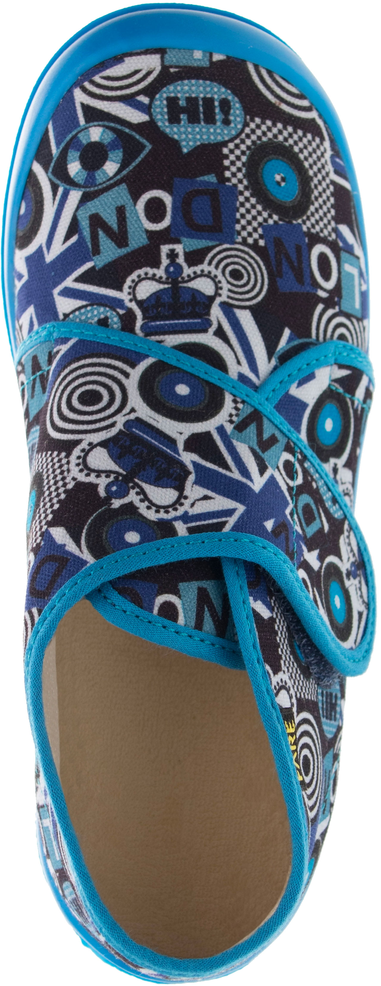 Přezůvková, kotníčková, textilní, lemovaná obuv, na velcro. Materiál svršku je z barevného pracího kordu, vnitřek je z bavlněného kepru. Podešev je vyvinuta jako odlehčená, materiál podešve z termoplastického elastomeru, je neklouzavá pro všechny běžně používané podlahoviny. Tato domácí a přezůvková obuv odpovídá ortopedickým požadavkům a zásadám zdravého obouvání. Obuv je v prstové části prostorově vytvarována, je vybavena pevným opatkem tak, jako je běžné u kvalitní celokožené obuvi. Vkládací stélka je vybavena komfortní tlumící vrstvou a klenkovou podporou. Obuv je designována v souladu nejmodernějšími módními trendy, včetně podešve, která chrání přední část před rychlým opotřebením.