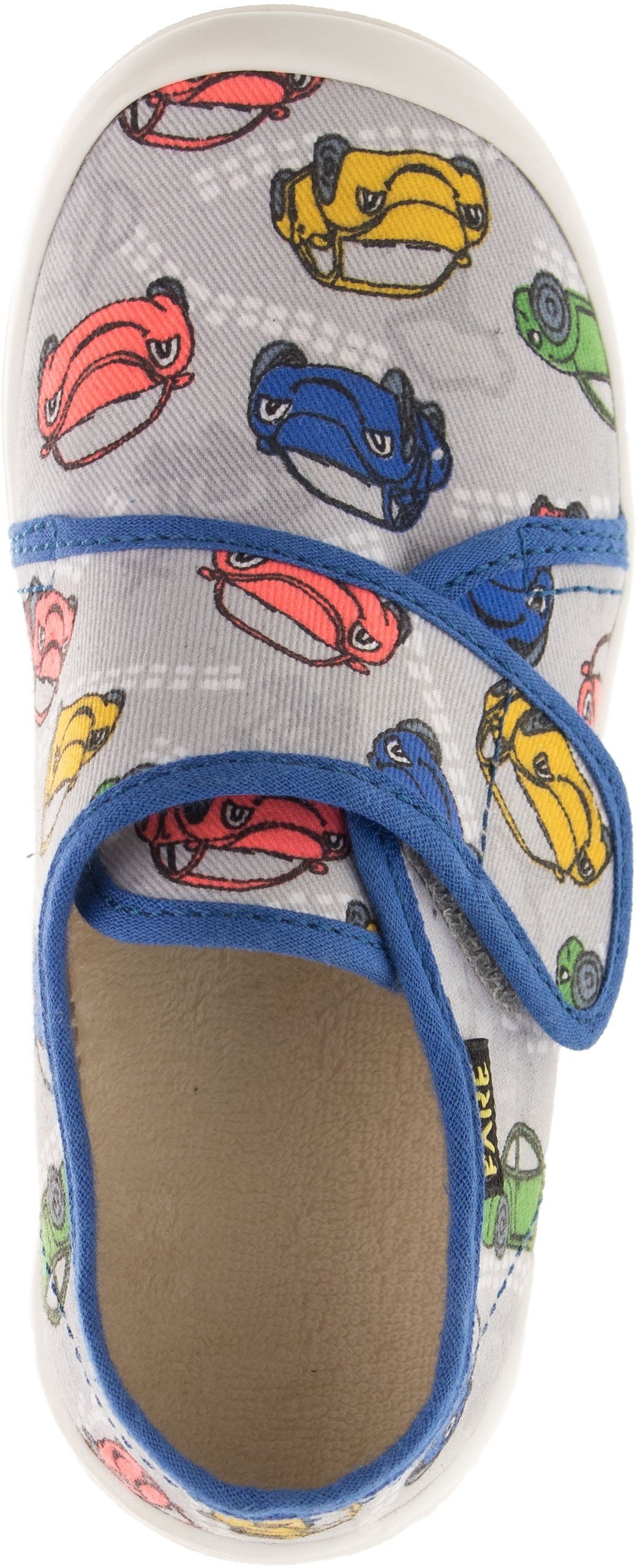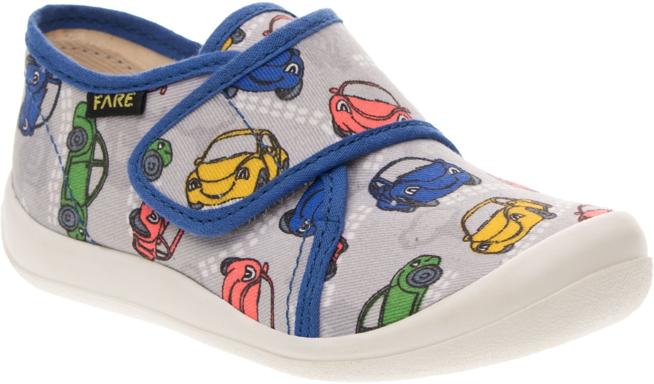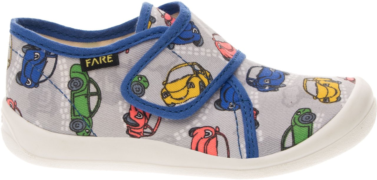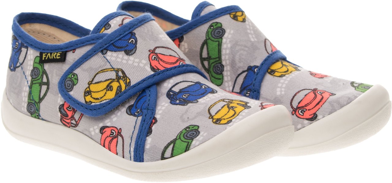 Přezůvková, nízká, textilní, lemovaná obuv na suchý zip. Materiál svršku je z barevného pracího kordu, vnitřek je z bavlněného kepru. Podešev je vyvinuta jako odlehčená, materiál podešve z termoplastického elastomeru, je neklouzavá pro všechny běžně používané podlahoviny. Tato domácí a přezůvková obuv odpovídá ortopedickým požadavkům a zásadám zdravého obouvání. Obuv je v prstové části prostorově vytvarována, je vybavena pevným opatkem. Vkládací stélka je vybavena komfortní tlumící vrstvou. Obuv je designována v souladu s módními trendy, včetně podešve, která chrání přední část před rychlým opotřebením.