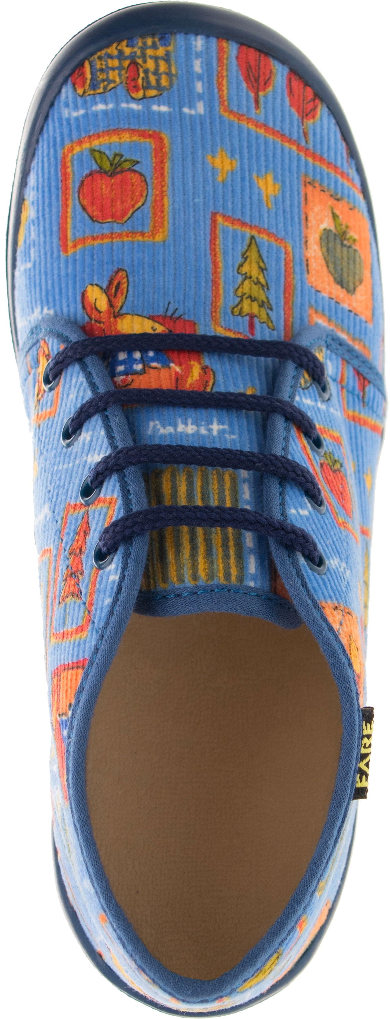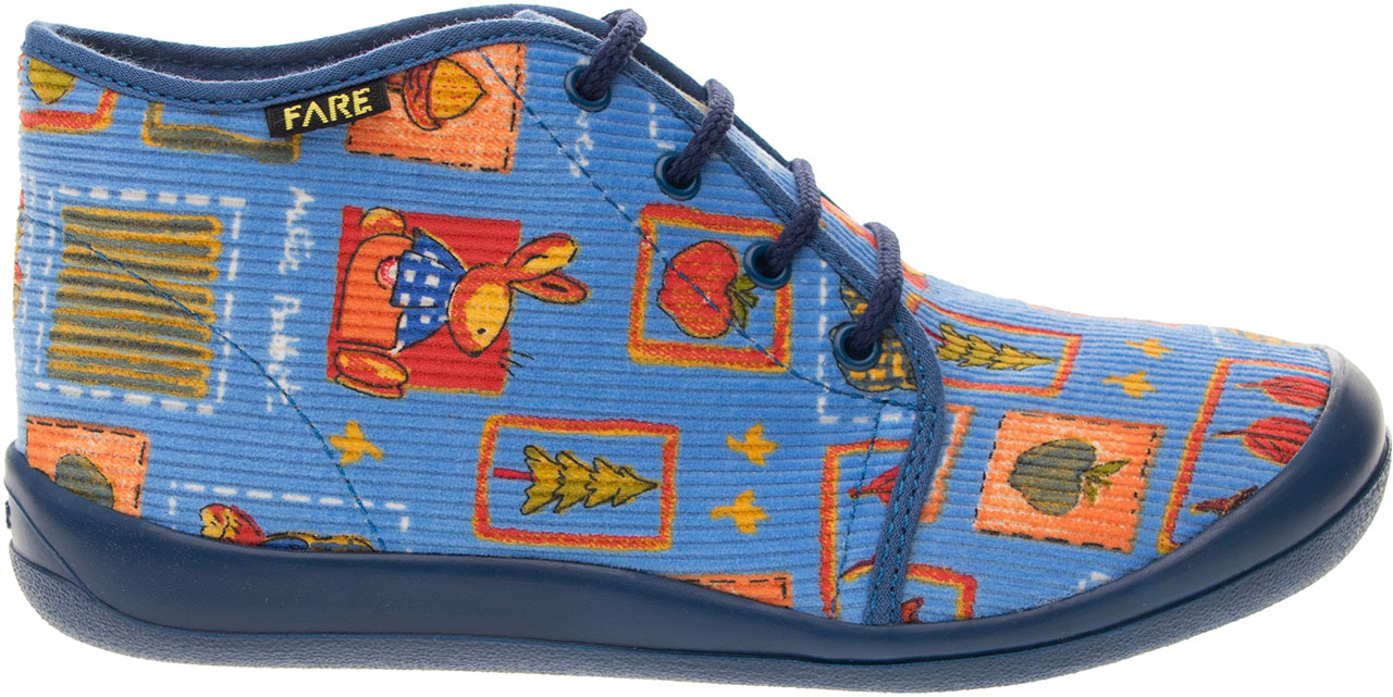 Přezůvková, kotníčková, textilní, lemovaná obuv, šněrovací. Materiál svršku je z barevného pracího kordu, vnitřek je z bavlněného kepru. Podešev je vyvinuta jako odlehčená, materiál podešve z termoplastického elastomeru, je neklouzavá pro všechny běžně používané podlahoviny. Tato domácí a přezůvková obuv odpovídá ortopedickým požadavkům a zásadám zdravého obouvání. Obuv je v prstové části prostorově vytvarována, je vybavena pevným opatkem tak, jako je běžné u kvalitní celokožené obuvi. Vkládací stélka je vybavena komfortní tlumící vrstvou. Obuv je designována v souladu nejmodernějšími módními trendy, včetně podešve, která chrání přední část před rychlým opotřebením.