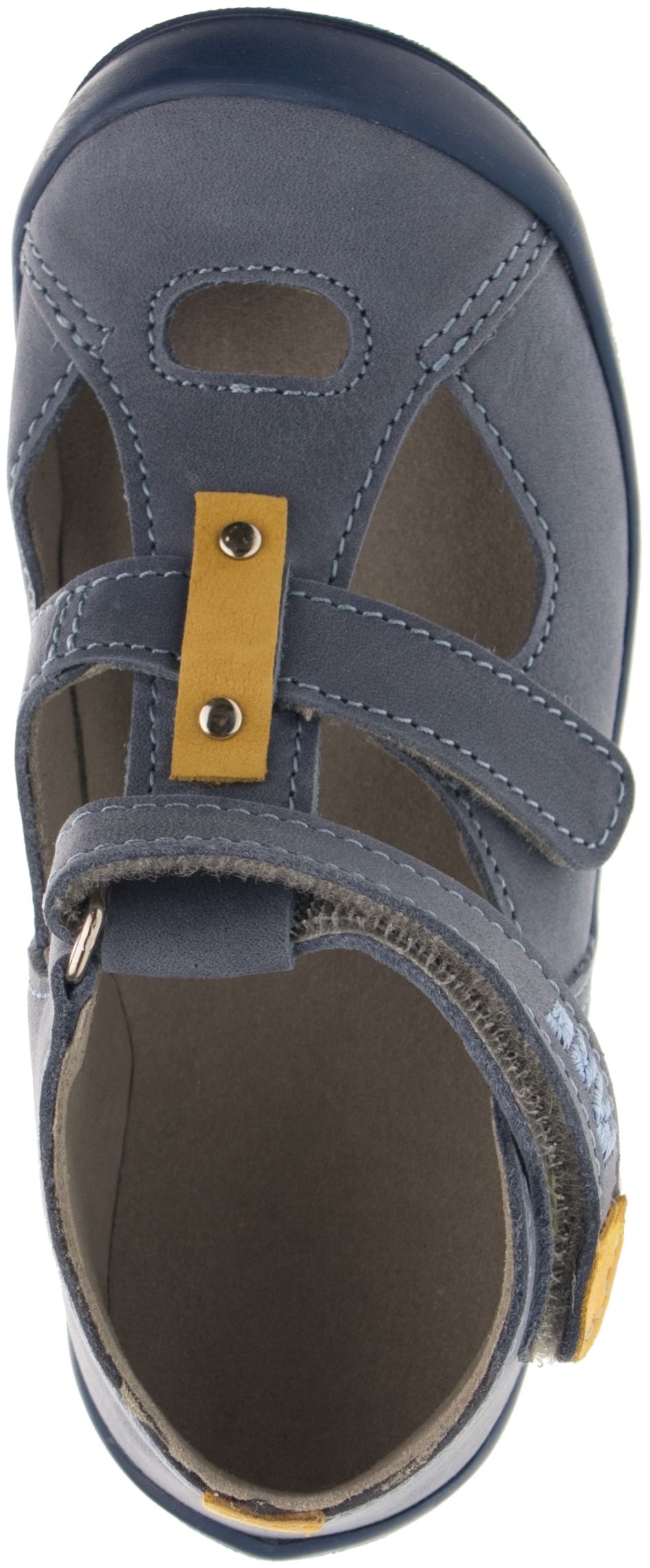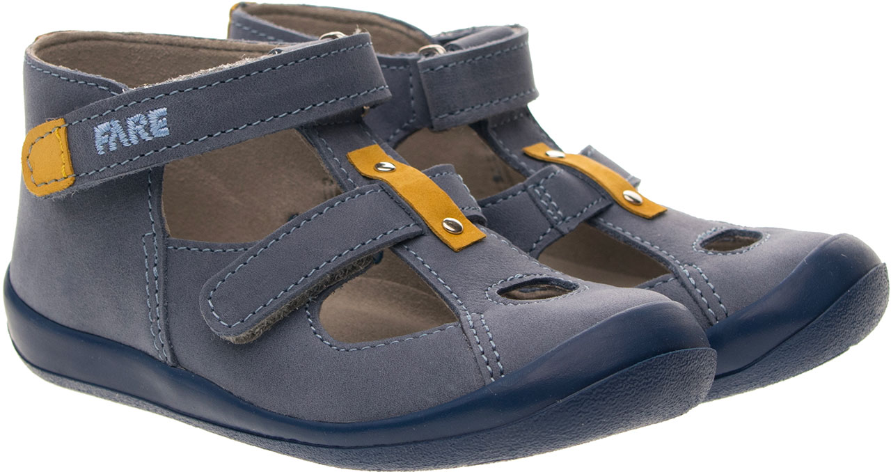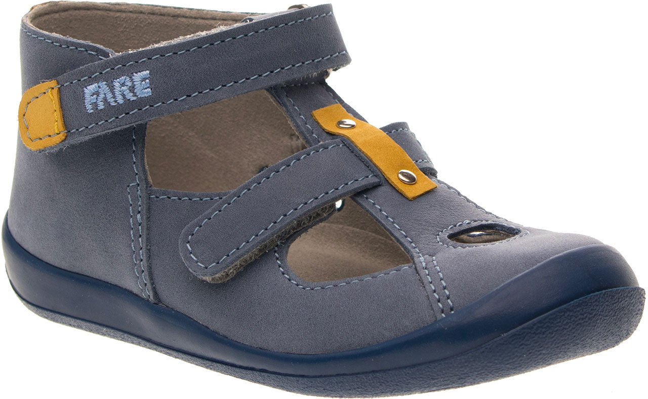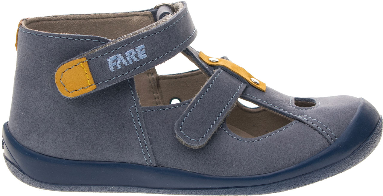 Kotníčková obuv, zapínání na velcro. Vrchový materiál - pravá lícová kůže. Podšívka – netkaná textilie. Podešev je z termoplastického kaučuku, barevně sladěná s vrchem. Předností je vyjímatelná vkládací stélka, pevný opatek a po rozepnutí maximální otevřenost obuvi.