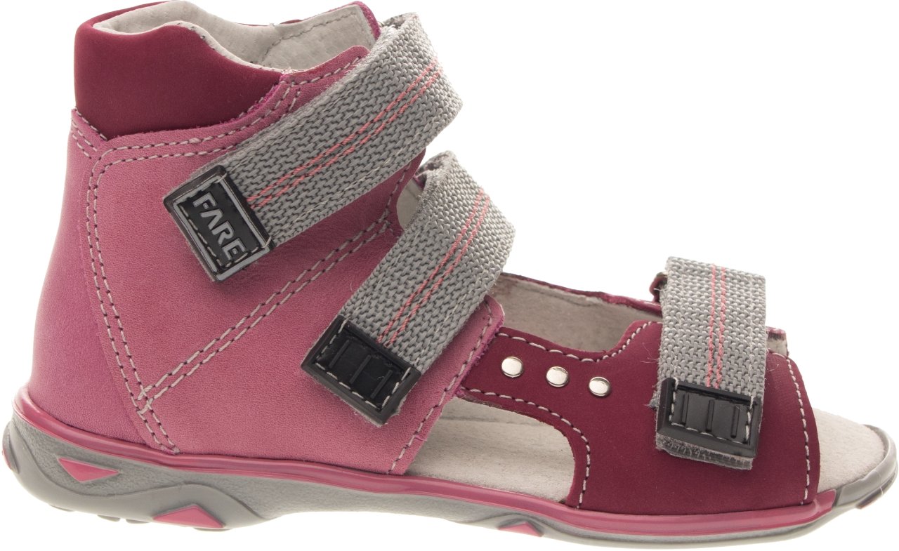 Sandálková obuv bez špice se zapínáním na velkro. Vrchový materiál – nubuk v kombinaci s hladkou kůží. Podšívka – pravá kůže. Podešev je z termoplastického kaučuku. Předností je vypolstrovaná stélka, regulovatelnost obuvi přes nárt, pevný opatek a výška paty, která je v souladu s podmínkami zdravého obouvání.
