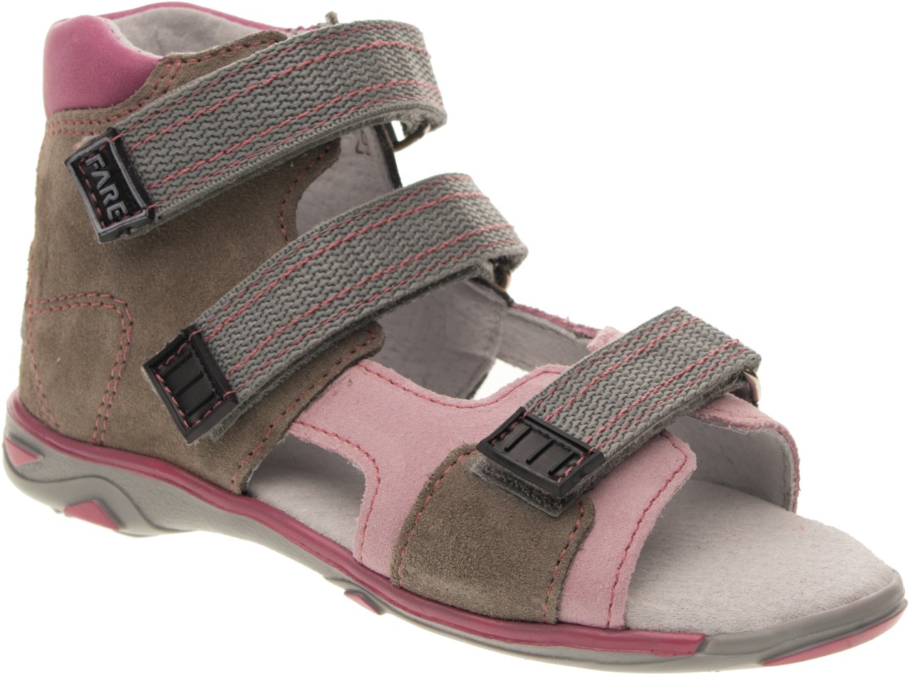 Sandálková obuv bez špice se zapínáním na velkro. Vrchový materiál – pravá broušená kůže. Podšívka – pravá kůže. Podešev je z termoplastického kaučuku. Předností je vypolstrovaná stélka, regulovatelnost obuvi přes nárt, pevný opatek a výška paty, která je v souladu s podmínkami zdravého obouvání.