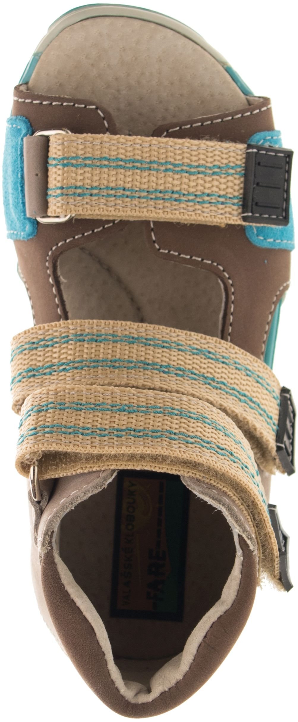 Sandálková obuv bez špice se zapínáním na velkro. Vrchový materiál – pravá kůže hladká v kombinaci s kůží broušenou . Podšívka – pravá kůže. Podešev je z termoplastického kaučuku. Předností je vypolstrovaná stélka, regulovatelnost obuvi přes nárt, pevný opatek a výška paty, která je v souladu s podmínkami zdravého obouvání.