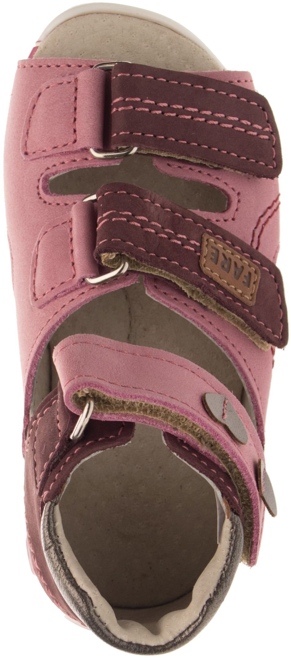 Sandálková obuv bez špice se zapínáním na velkro. Vrchový materiál – pravá kůže hladká v kombinaci s nubukem . Podšívka – pravá kůže. Podešev je z termoplastického kaučuku. Předností je vypolstrovaná stélka, regulovatelnost obuvi přes nárt, pevný opatek a výška paty, která je v souladu s podmínkami zdravého obouvání.