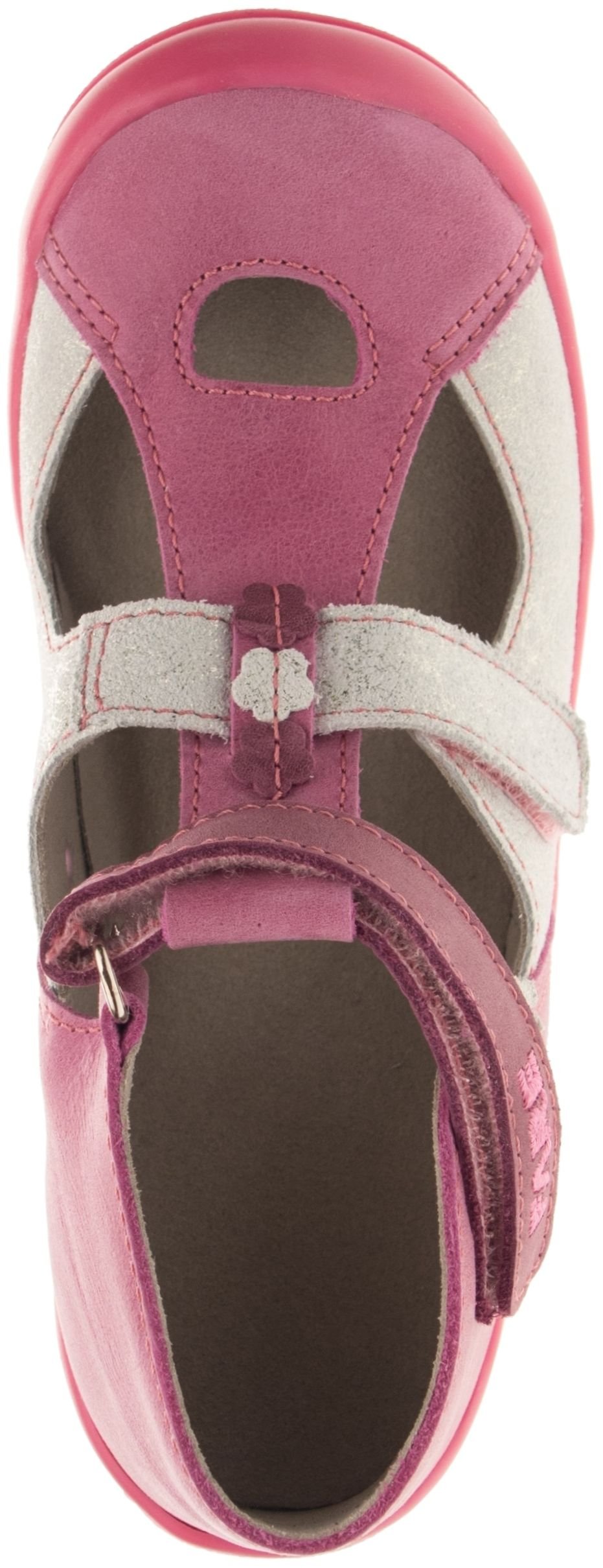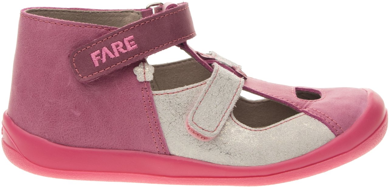 Kotníčková obuv, zapínání na velcro. Vrchový materiál - pravá lícová kůže. Podšívka – netkaná textilie. Podešev je z termoplastického kaučuku, barevně sladěná s vrchem. Předností je vyjímatelná vkládací stélka, pevný opatek a po rozepnutí maximální otevřenost obuvi.