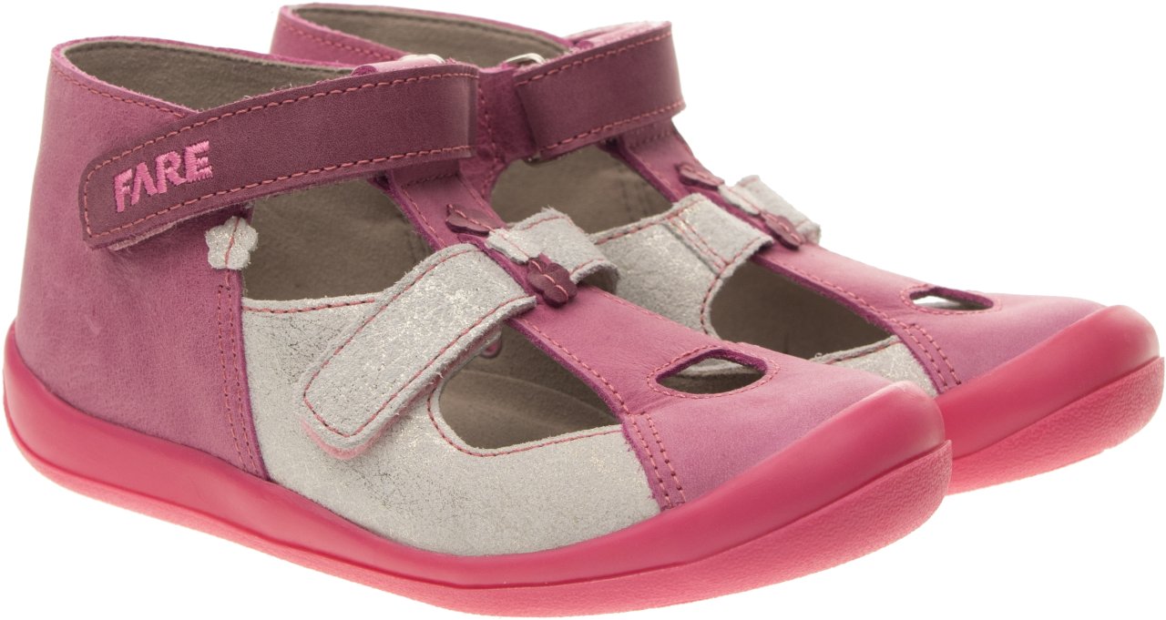 Kotníčková obuv, zapínání na velcro. Vrchový materiál - pravá lícová kůže. Podšívka – netkaná textilie. Podešev je z termoplastického kaučuku, barevně sladěná s vrchem. Předností je vyjímatelná vkládací stélka, pevný opatek a po rozepnutí maximální otevřenost obuvi.