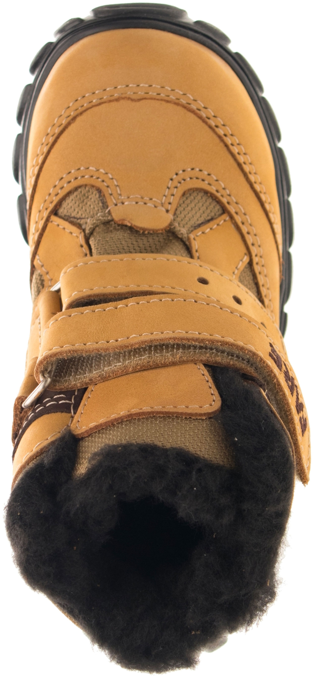 Zimní treková kotníčková obuv se zapínáním na suchý zip. Vrchový materiál: přírodní hovězinová useň broušená (nubuk) v kombinaci s textilem. Podšívka je z hřejivého, vlasového materiálu.