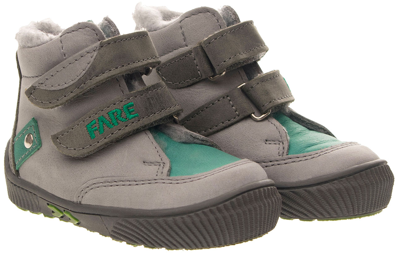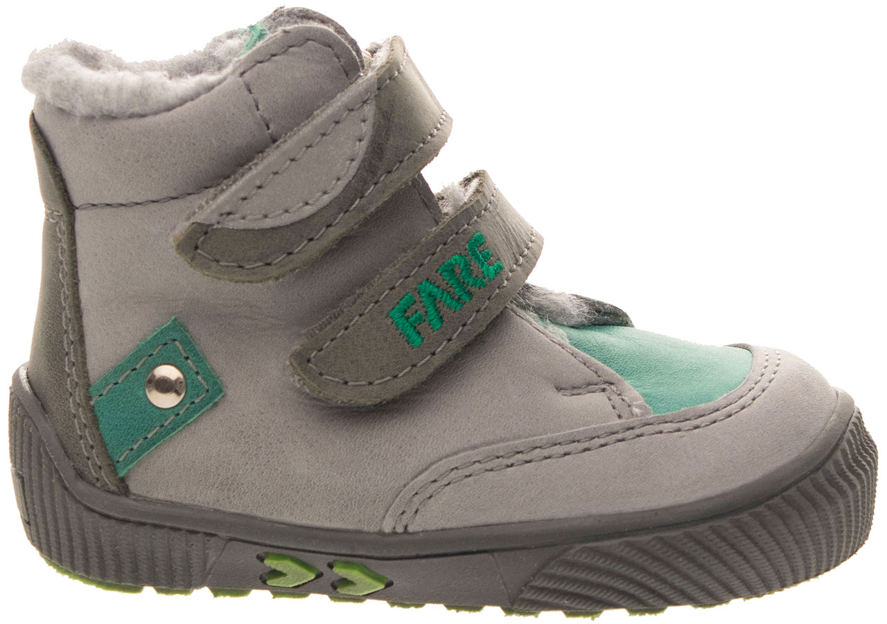 Pevná, kotníčková obuv, zapínání na velcro. Vrchový materiál - pravá kůže hladká v kombinaci s nubukem. Podšívka je zimní s hřejivým, středně dlouhým vlasem. Podešev je z termoplastického kaučuku, jehož složení splňuje parametry pro používání v zimním období. Předností je vyjímatelná vkládací stélka a pevný opatek i špice.