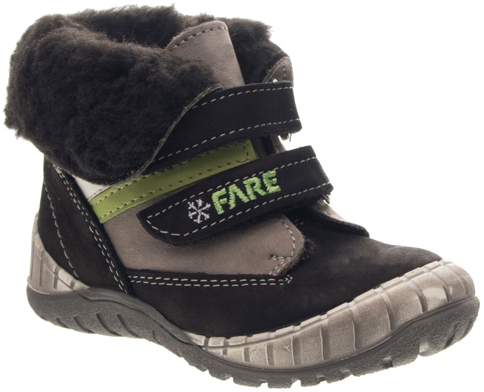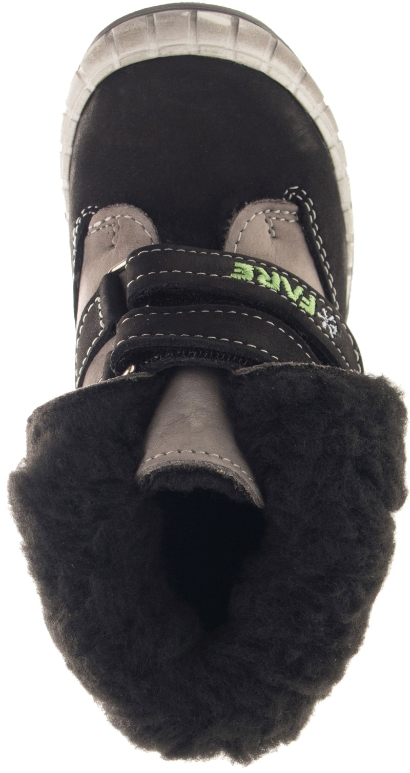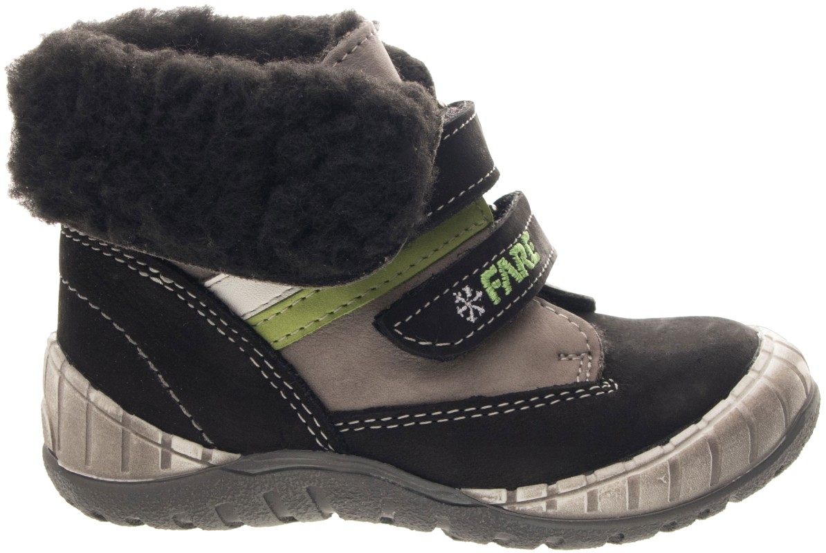 Pevná, zimní kotníčková obuv se zapínáním na velcro. Vrchový materiál - nubuk. Podšívka je zimní s hřejivým, středně dlouhým vlasem, ohrnutím límečku nahoru se hřejivá plocha ještě zvětší. Podešev je z termoplastického kaučuku, jehož složení splňuje parametry pro používání v zimním období. Předností je vyjímatelná vkládací stélka a pevný opatek i špice.