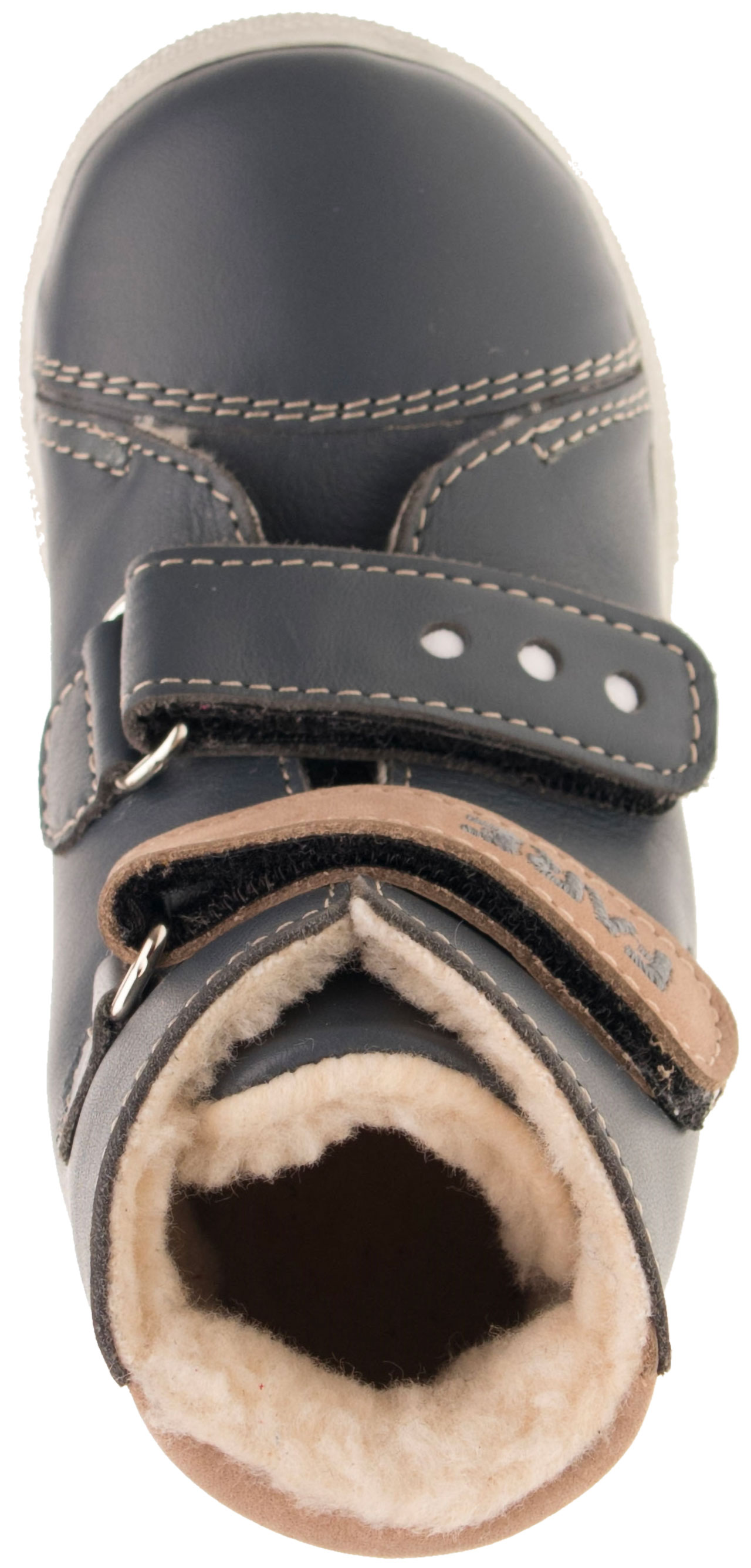 Zimní štróblovaná kotníčková obuv se zapínáním na suchý zip. Našívací (štróblovaná) stélka umožňuje lepší flexibilitu boty. Vrchový materiál: přírodní hovězinová useň lícová. Podšívka je zimní s hřejivým středně dlouhým vlasem.
