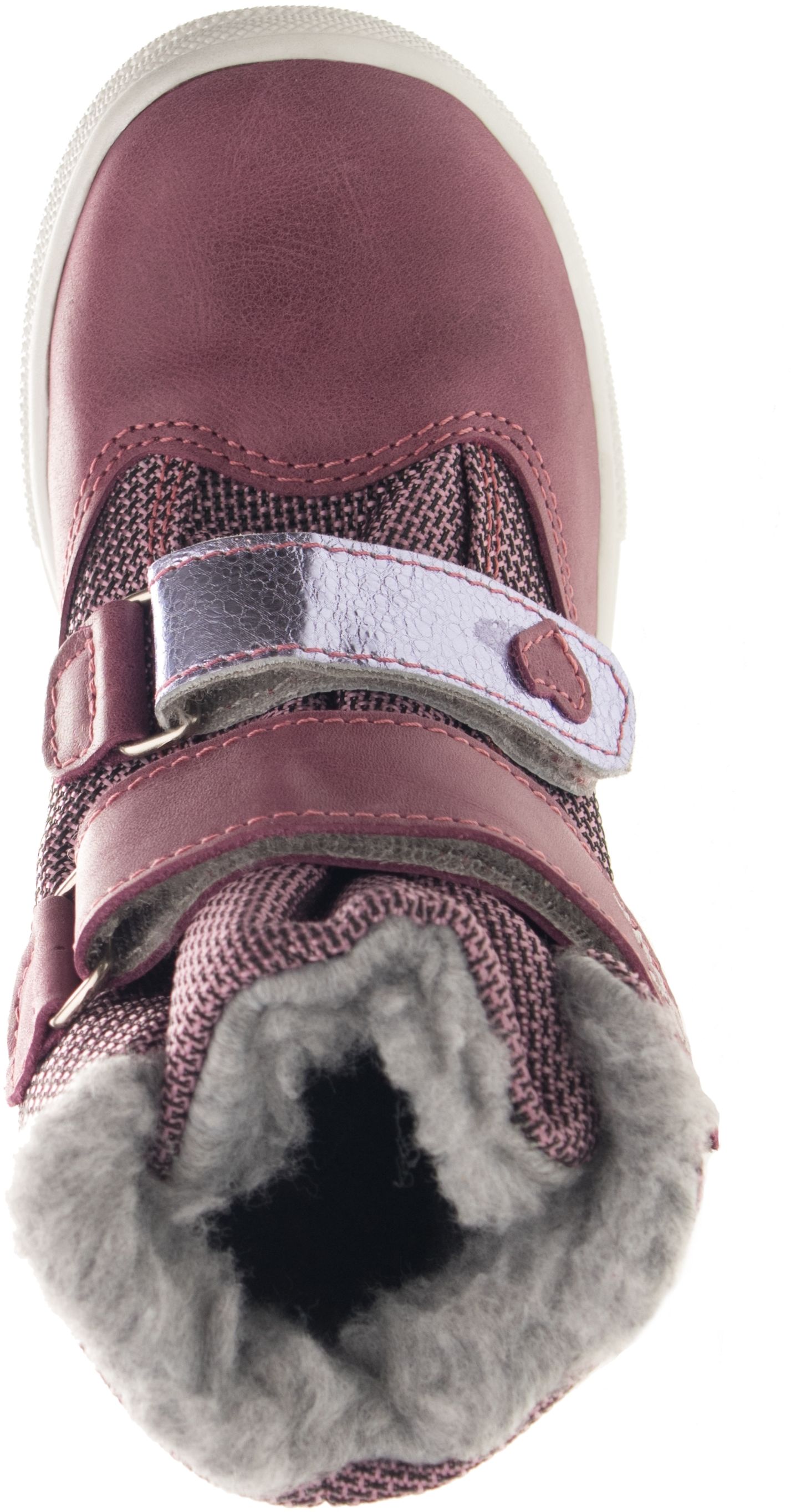 Zimní štróblovaná kotníčková obuv s membránou a se zapínáním na suchý zip. Našívací (štróblovaná) stélka umožňuje lepší flexibilitu boty. Vrchový materiál: přírodní hovězinová useň broušená (nubuk) v kombinaci s textilem. Podšívka je zimní s hřejivým středně dlouhým vlasem.