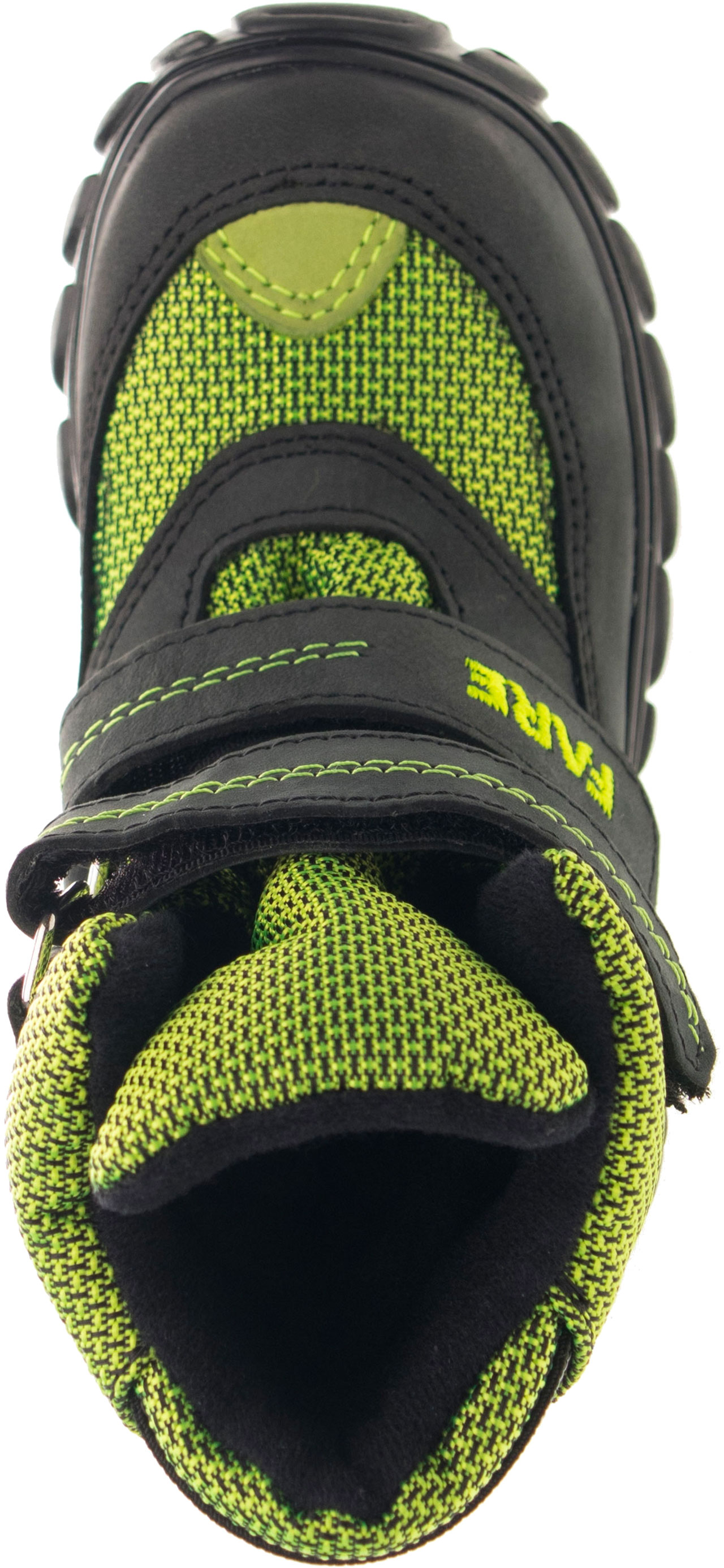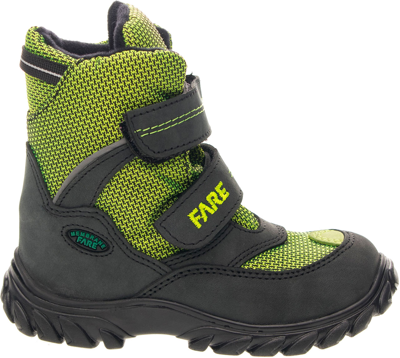 Zimní kotníčková obuv s membránou (FARE-TEX) se zapínáním na suchý zip. Vrchový materiál: přírodní hovězinová useň broušená (nubuk) v kombinaci s textilem. Podšívka je zimní s hřejivým, středně dlouhým vlasem.