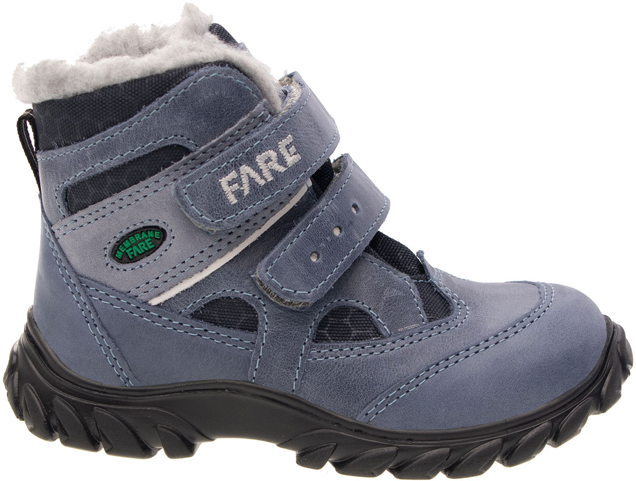 Zimní, treková, kotníčková obuv s membránou a se zapínáním na suchý zip. Vrchový materiál: přírodní hovězinová useň lícová hladká v kombinaci s kůží broušenou (nubuk). Podšívka je zimní s hřejivým, středně dlouhým vlasem.