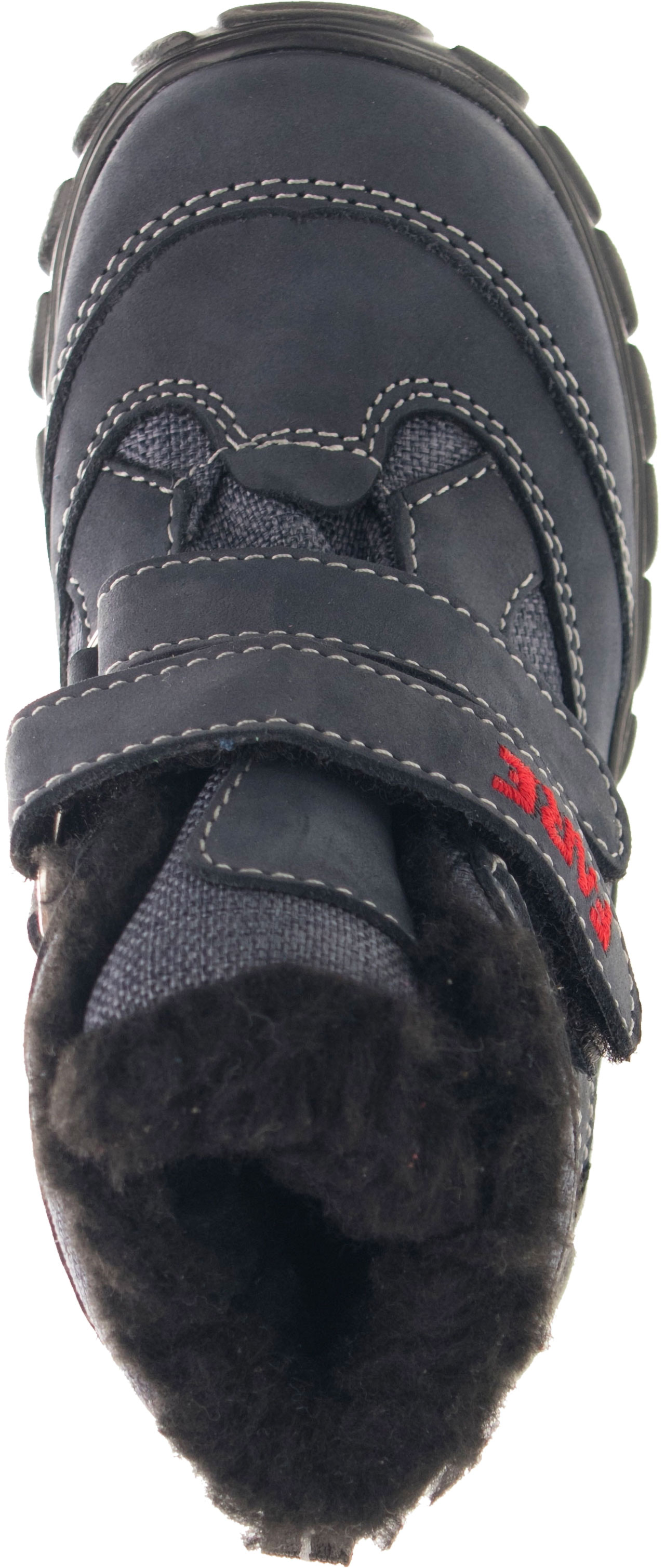 Zimní treková kotníčková obuv se zapínáním na suchý zip. Vrchový materiál: přírodní hovězinová useň broušená (nubuk) v kombinaci s textilem. Podšívka je z hřejivého, vlasového materiálu.