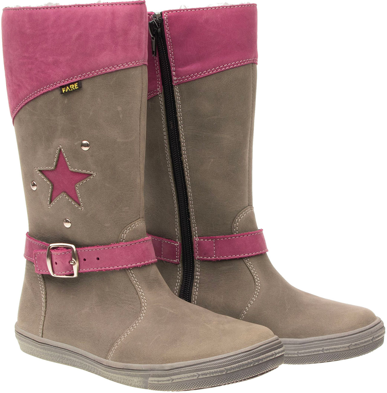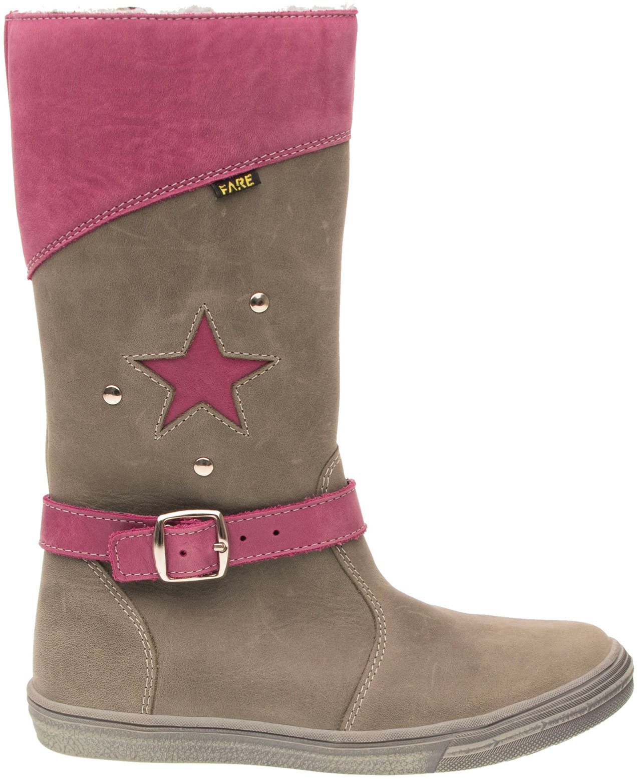 Zimní kozačková obuv, s membránou, na vnitřní straně uzavíratelná podloženým obuvnickým zipem. Vrchový materiál – pravá kůže hladká. Podšívka je z hřejivého, vlasového materiálu. Svršek je tvarován na upraveném kopytě, aby obuv co nejvěrněji kopírovala nohu. Podešev je z termoplastického kaučuku s módním dezénem, vyvýšená část podešve v přední části chrání špici obuvi při běžném zakopávání. Předností je vyjímatelná vkládací stélka a pevný opatek i špice. Obuv je opatřena nástřikem proti nasákavosti vody.