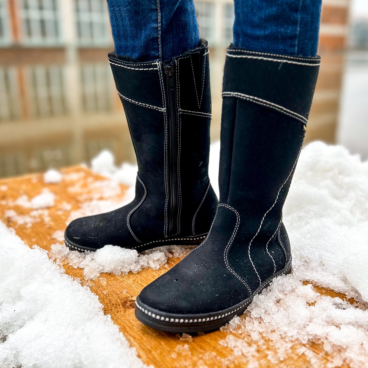 Zimní kozačková obuv, na vnitřní straně uzavíratelná podloženým obuvnickým zipem. Vrchový materiál: přírodní hovězinová useň broušená (nubuk). Podšívka je zimní s hřejivým, středně dlouhým vlasem. Svršek je tvarován na upraveném kopytě, aby obuv co nejvěrněji kopírovala nohu. Podešev je z termoplastického kaučuku, jehož složení splňuje parametry pro používání v zimním období. Předností je vyjímatelná vkládací stélka a pevný opatek i špice.