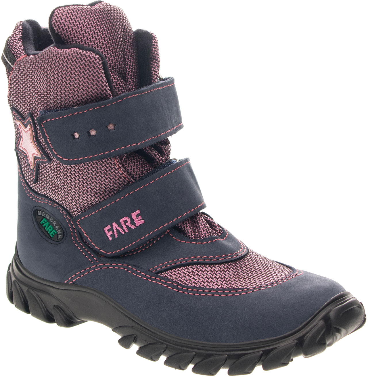 Zimní kotníčková obuv s membránou (FARE-TEX) se zapínáním na suchý zip. Vrchový materiál: přírodní hovězinová useň broušená (nubuk) v kombinaci s textilem. Podšívka je zimní s hřejivým, středně dlouhým vlasem.