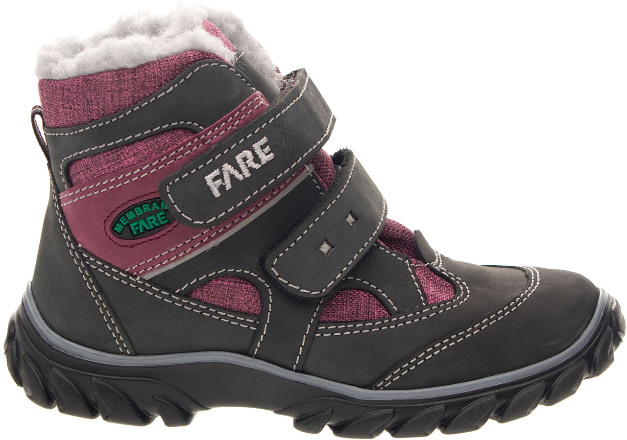 Zimní trekingová kotníčková obuv s membránou a se zapínáním na suchý zip. Vrchový materiál: přírodní hovězinová useň broušená (nubuk) v kombinaci s textilem. Podšívka je zimní s hřejivým, středně dlouhým vlasem. Podešev je z termoplastického kaučuku, jehož složení splňuje parametry pro používání v zimním období. Předností je vyjímatelná vkládací stélka a pevný opatek i špice.