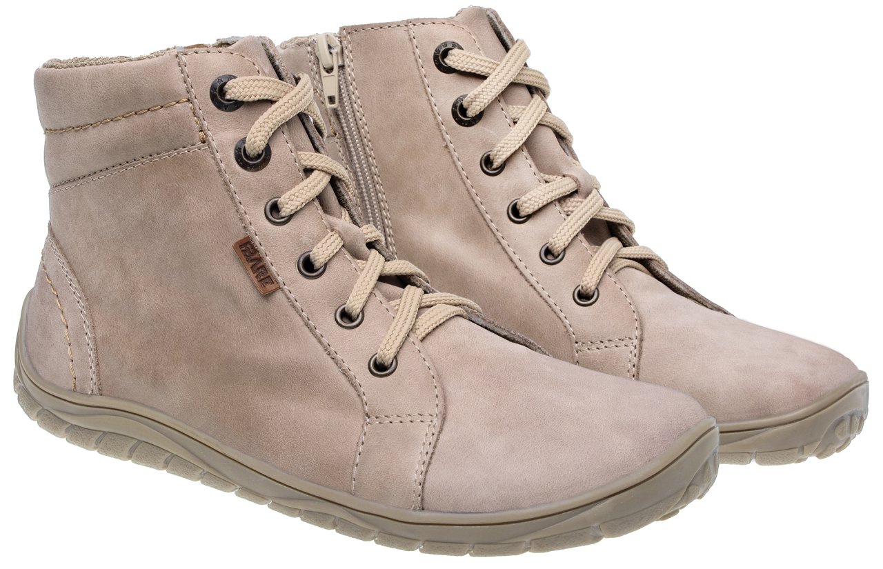 Kotníková celoroční barefoot obuv řady A je navržena pro každodenní nošení při běžném pohybu ve městě i při výletech do přírody. Kotníkový střih poskytuje lepší jistotu při chůzi a pomáhá stabilnímu usazení nohy v obuvi.