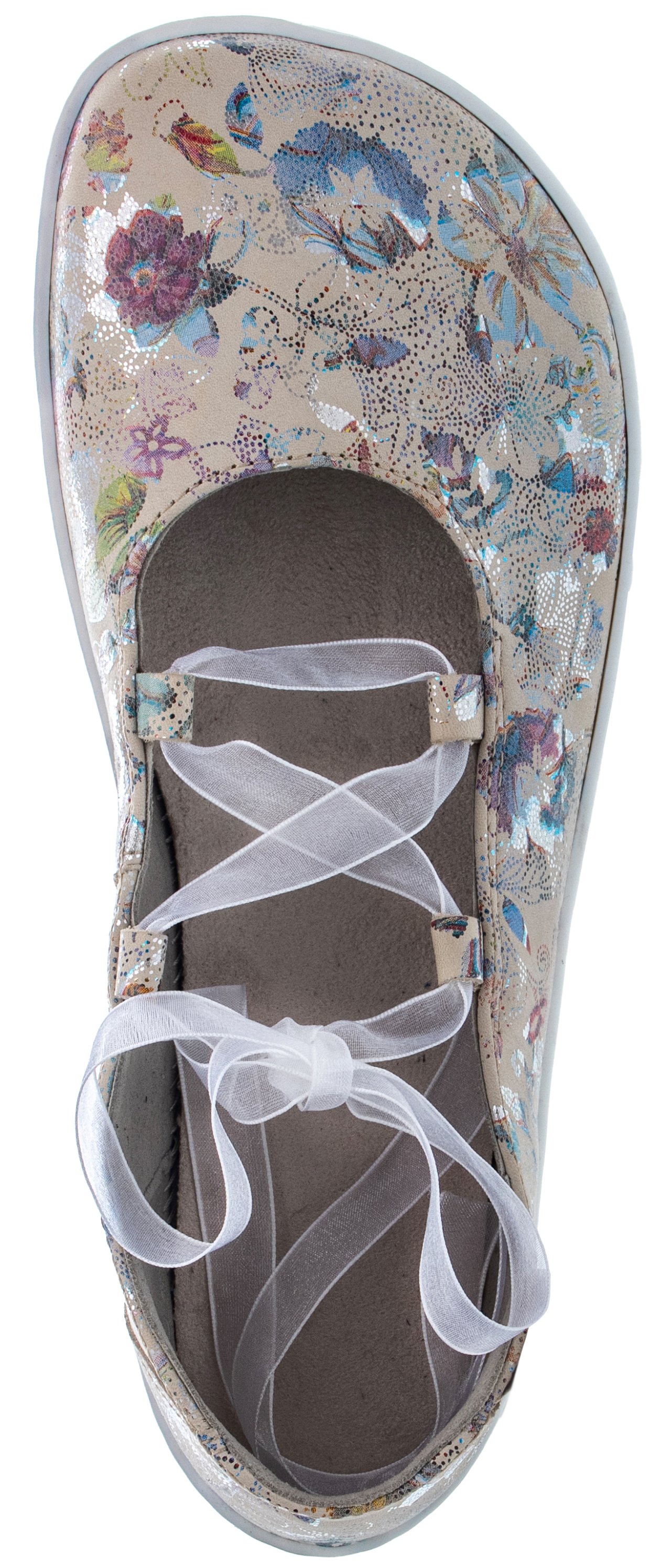 Elegantní barefoot baleríny v nadčasovém odstínu moka s potiskem květů spojují lehkost, komfort a přirozený pohyb. Anatomicky tvarovaná špička respektuje tvar chodidla, zatímco flexibilní podešev umožňuje volnost každého kroku. Stylové a decentní, tak aby jste využili do práce i ve volném času.