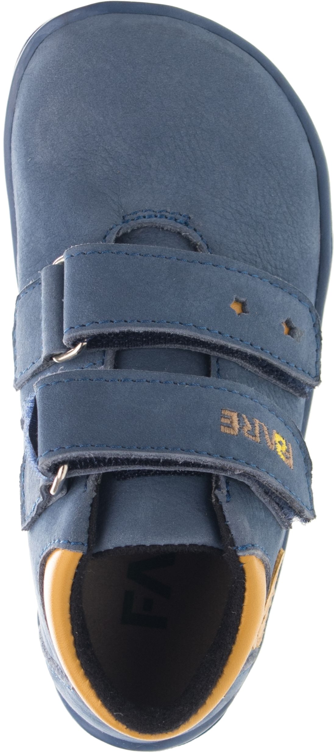 Svršek z pravé hovězinové kůže typu nubuk zajišťuje odolnost a příjemný kontakt s nohou. Integrovaná membrána pomáhá udržet nožky v suchu a zvyšuje komfort při nošení za vlhka. Anatomický barefoot tvar poskytuje dostatek prostoru pro prsty a umožňuje přirozené usazení nohy. Střih je vhodný pro nízký a středně vysoký nárt a úzkou až středně širokou patu.