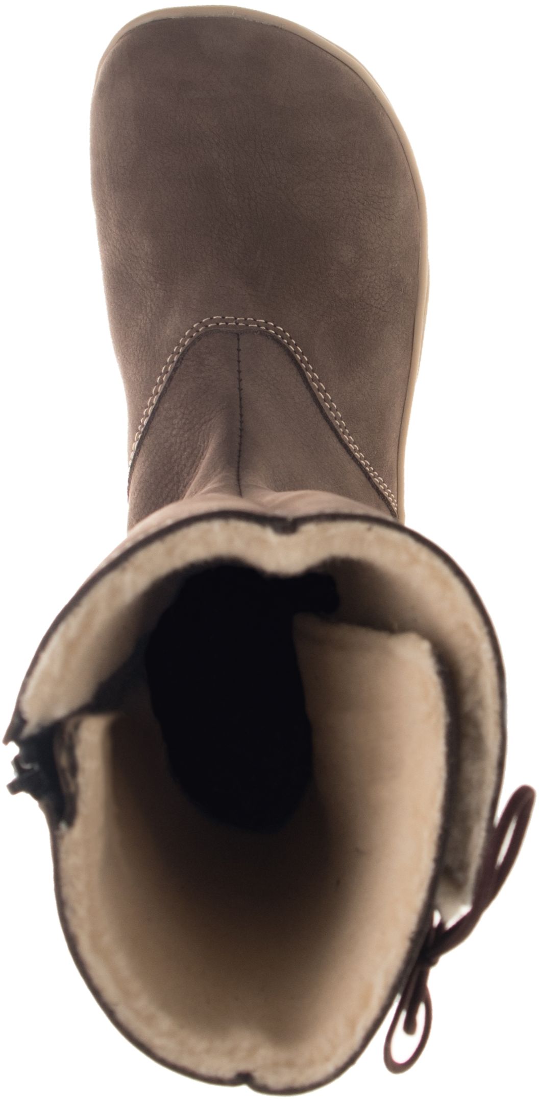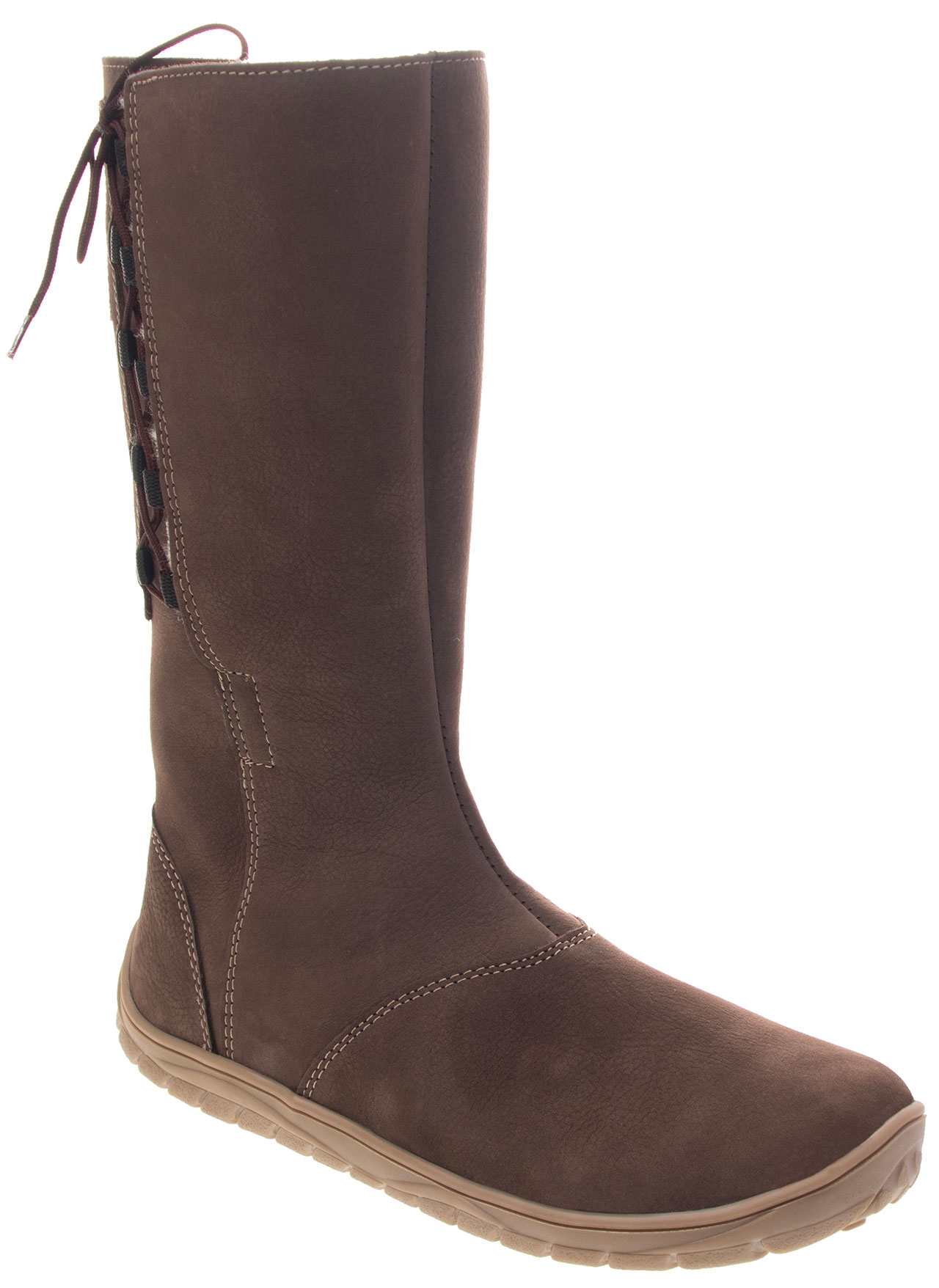 Zimní štróblovaná kozačková obuv se zapínáním na zip, který je umístěný z vnitřní strany obuvi. Našívací (štróblovaná) stélka umožňuje lepší flexibilitu boty. Vrchový materiál: přírodní hovězinová useň broušená (nubuk). Důležitou předností je postranní boční šněrování pro optimální nastavení dle šířky lýtka. Boty jsou bez podpatku. Podšívka je zimní s hřejivým, středně dlouhým vlasem. Podešev je vyrobena z termokaučuku, jehož složení splňuje parametry pro používání v zimním období.