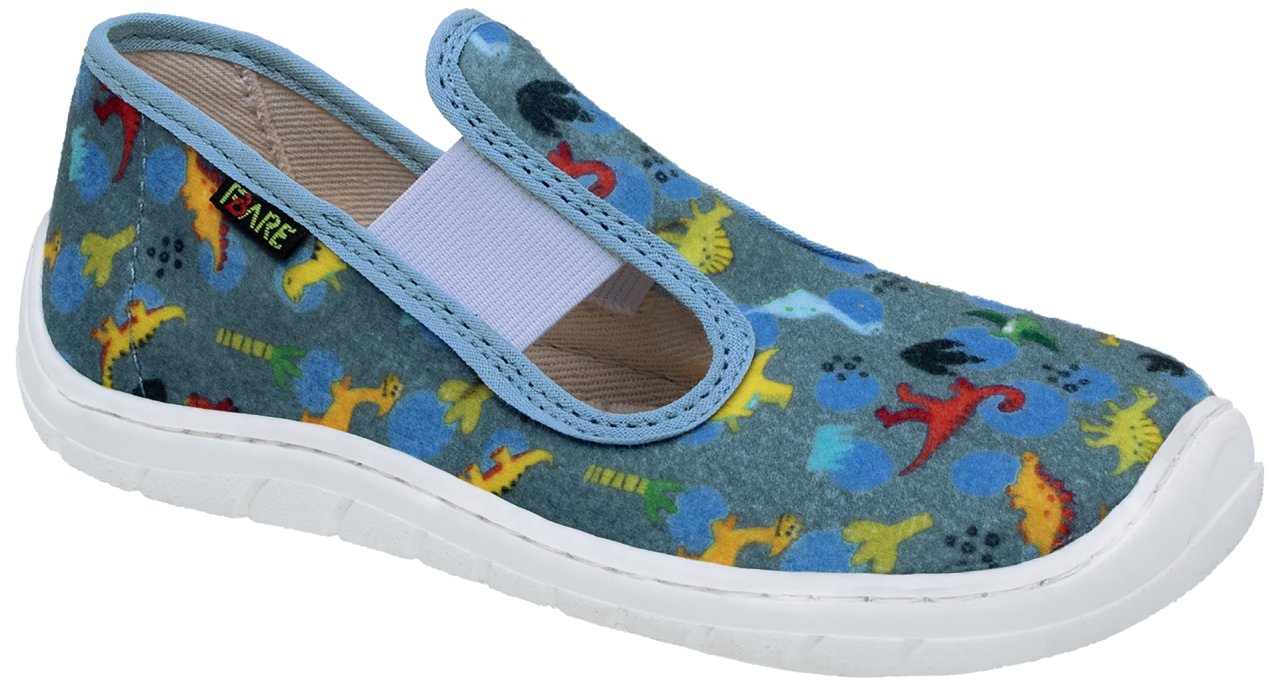 Nízká barefoot papučka značky FARE BARE je určena pro každodenní nošení v interiéru, například ve školce, škole nebo doma. Nízký střih a lehká konstrukce podporují volnost pohybu a jsou vhodné pro aktivní děti během celého dne.