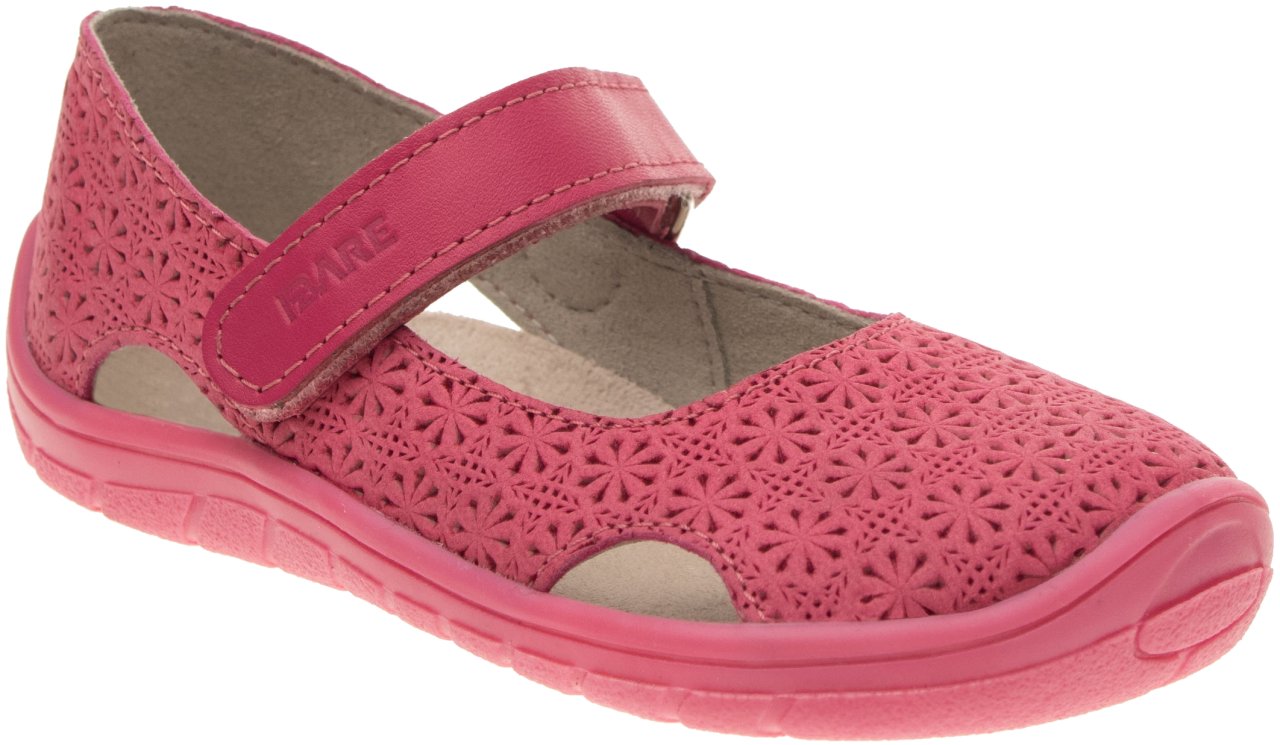 Kouzelná kombinace sandálků a balerín v jednom. Tyto elegantní růžové barefoot boty z měkké kůže s jemným koženým páskem na suchý zip a a květinovou ražbou  padnou jako ulité – zvlášť dívčím nožkám, které potřebují víc prostoru vpředu. Ideální k šatům i 3/4 kalhotám – lehké, krásně ohebné a dokonale flexibilní. Díky dvěma stélkám si snadno upravíte prostor uvnitř boty podle potřeby. FARE BARE nabízí pohodlí, které podporuje zdravý vývoj dětské nohy – s respektem k jejímu přirozenému tvaru. Oblíbený model malých princezen, které chtějí být šik a zároveň volně běhat celý den.