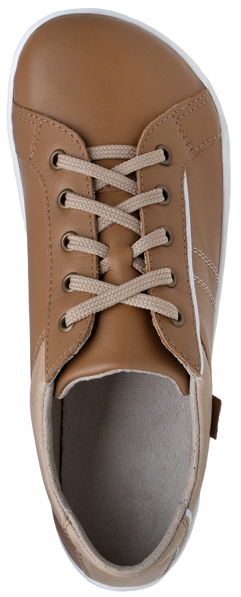 Svršek z pravé hladké hovězinové kůže poskytuje potřebnou odolnost a příjemný pocit při nošení. Anatomický barefoot tvar nabízí dostatek prostoru pro prsty a podporuje jejich přirozenou práci při chůzi. Střih je vhodný pro středně vysoký a vyšší nárt a středně širokou patu, což napomáhá správnému a stabilnímu usazení nohy v botě.