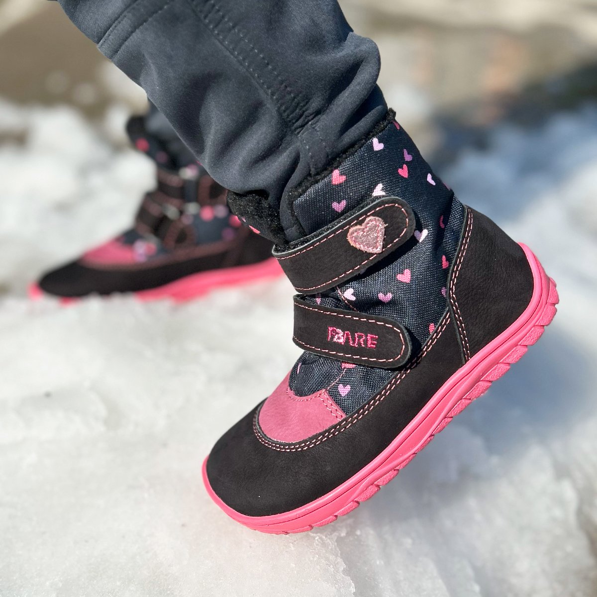 FARE BARE FINKY dětské zimní nepromokavé boty černo-růžové