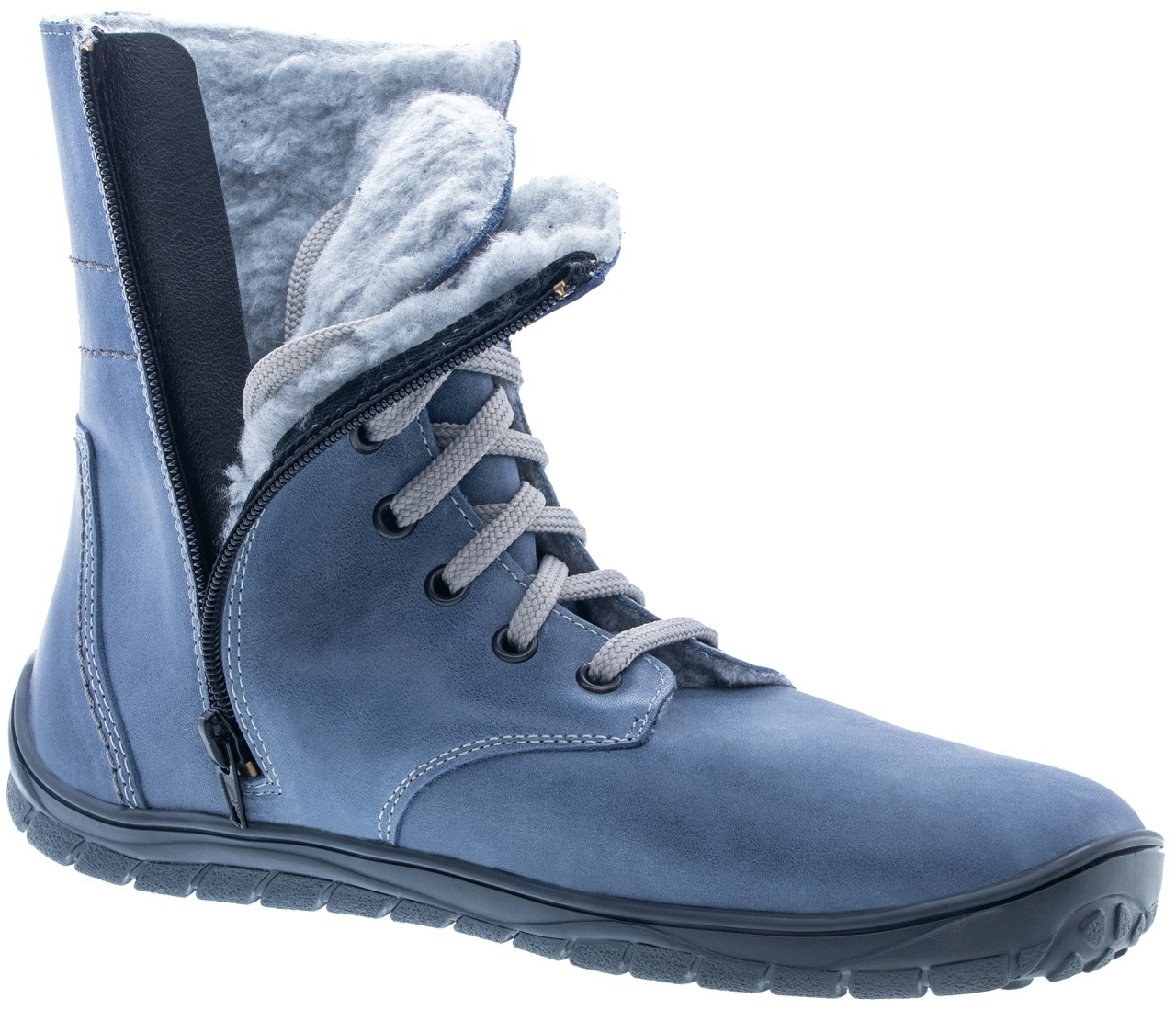 • Polovysoká zimní barefoot obuv se stélkou MERINO.