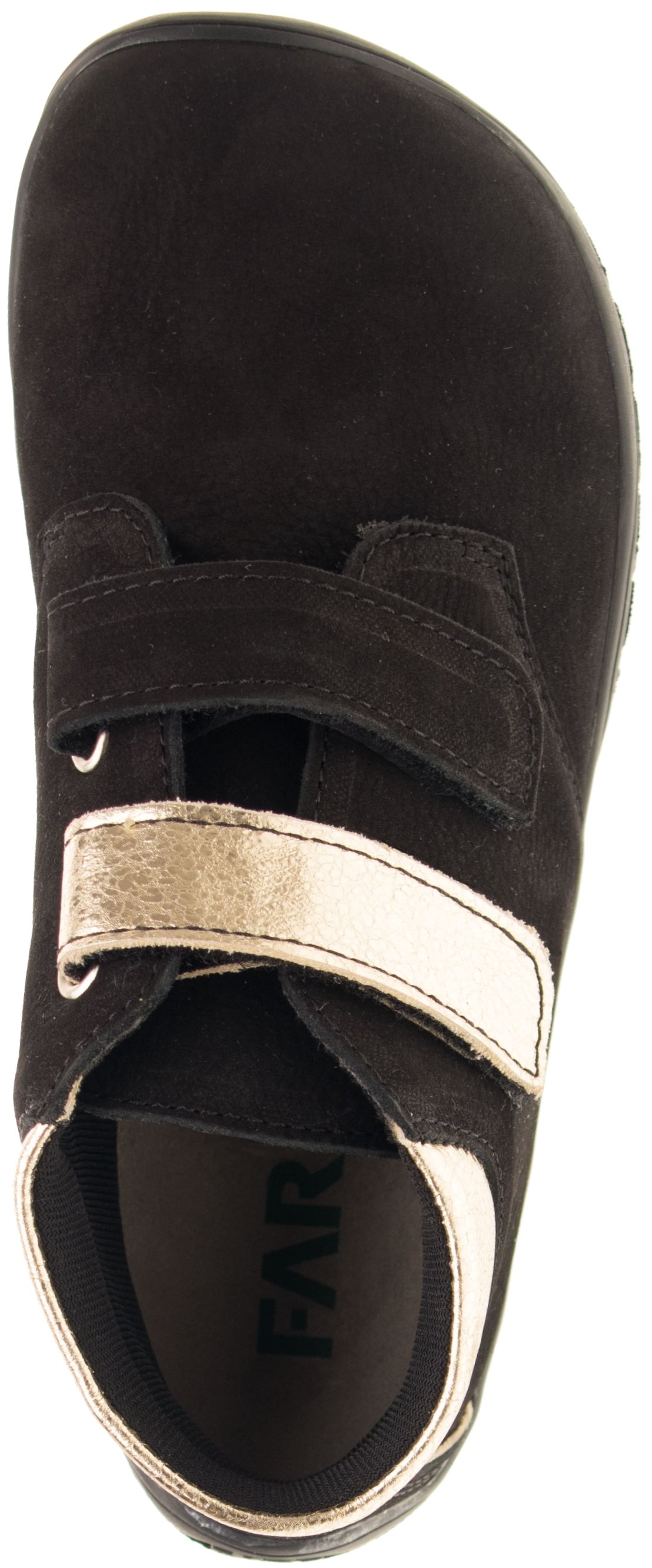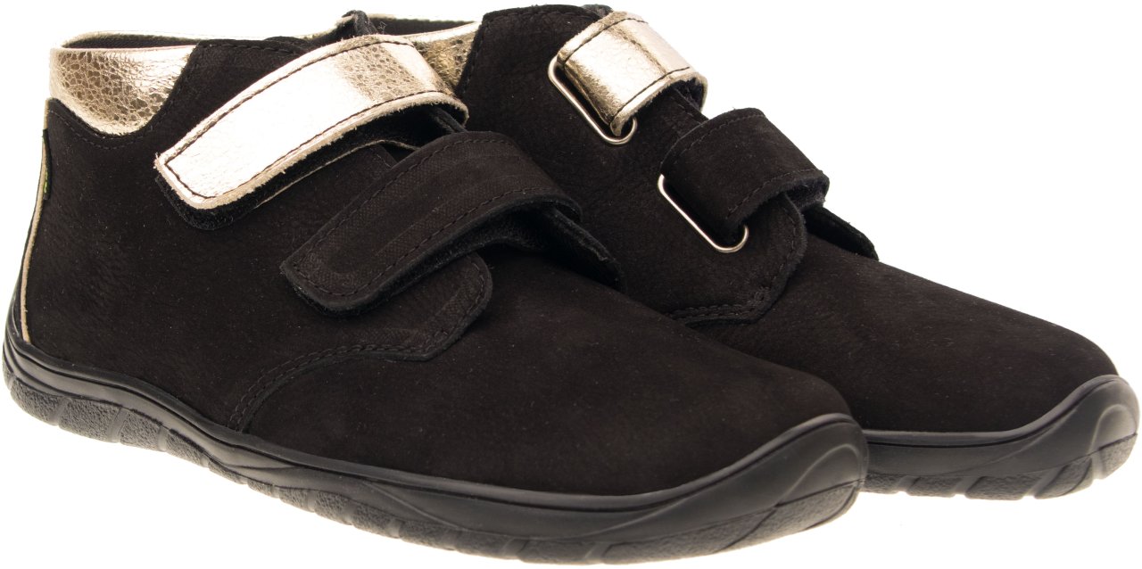 The upper is made of genuine nubuck leather, offering a balanced combination of durability and comfort. The anatomical barefoot shape provides sufficient space for the toes and allows their natural activity while walking. The fit is suitable for a low to medium-high instep, helping the foot sit correctly in the shoe without unnecessary pressure.