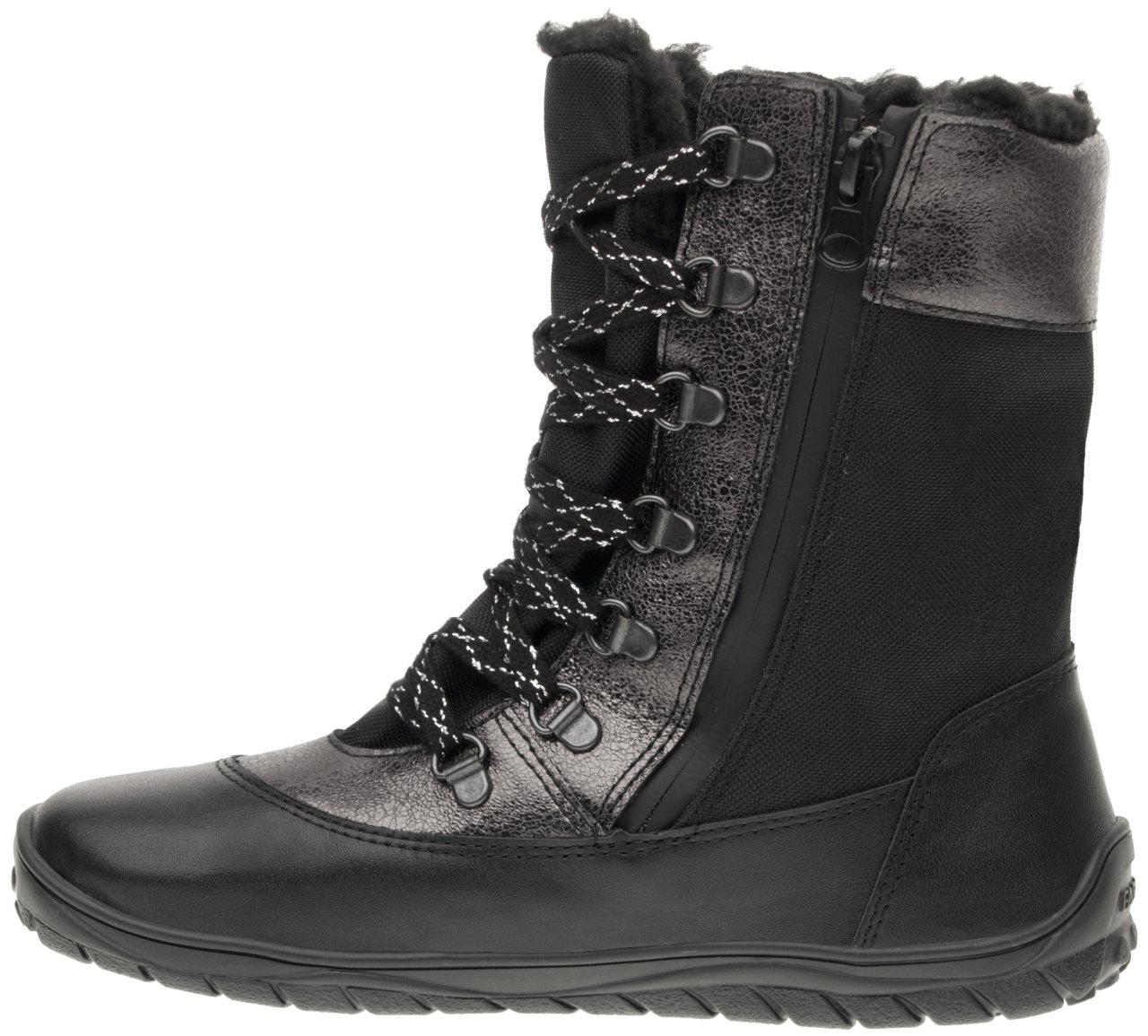 Zimní štróblovaná polovysoká obuv, šněrovací, s bočním zipem. Našívací (štróblovaná) stélka umožňuje lepší flexibilitu boty. Vrchový materiál: přírodní hovězinová useň lícová v kombinaci s textilem.