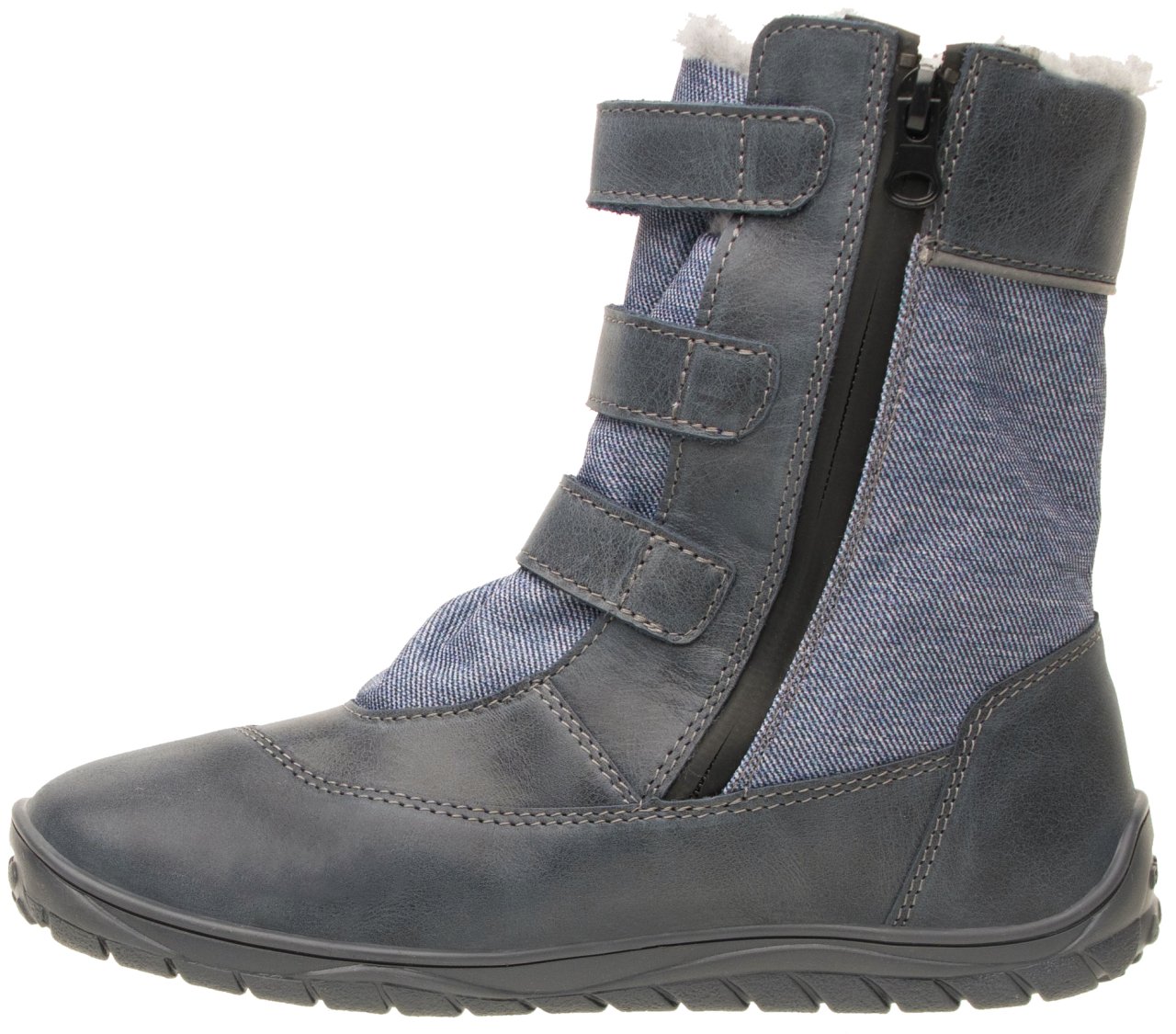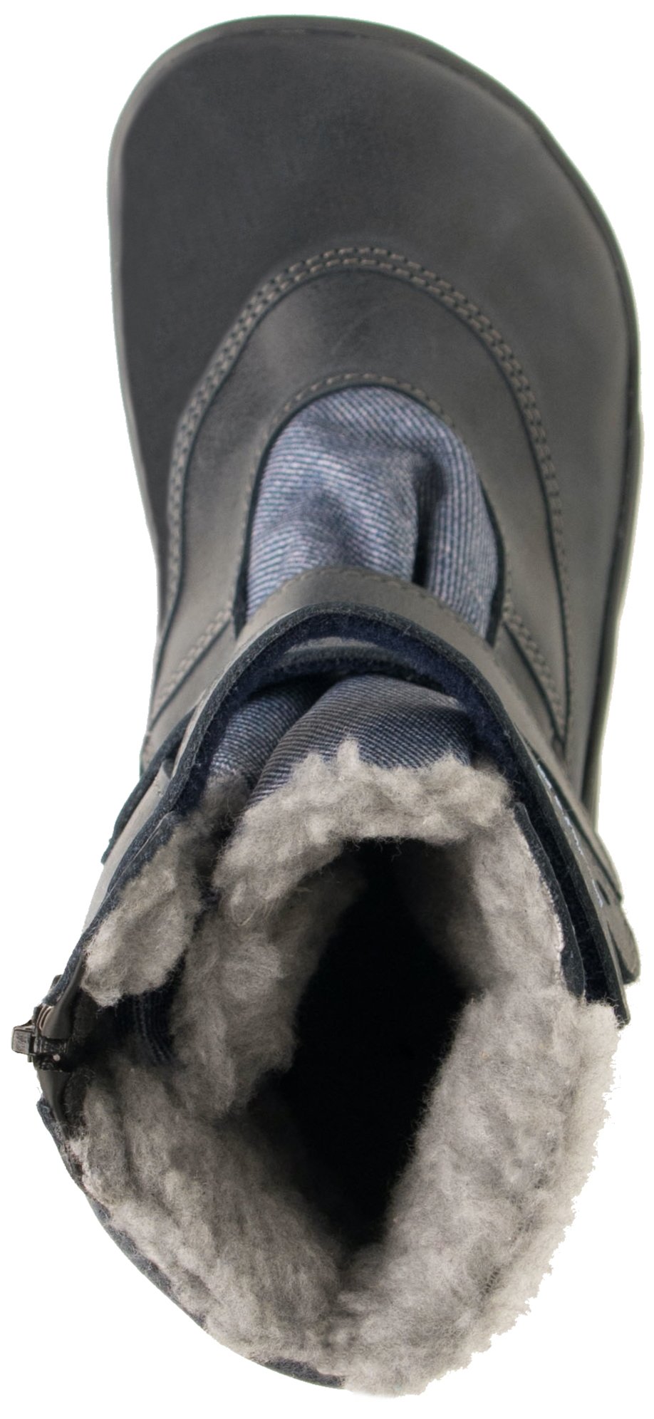 Zimní štróblovaná polovysoká obuv, na suchý zip, s bočním zipem. Našívací (štróblovaná) stélka umožňuje lepší flexibilitu boty. Vrchový materiál: přírodní hovězinová useň lícová v kombinaci s textilem.