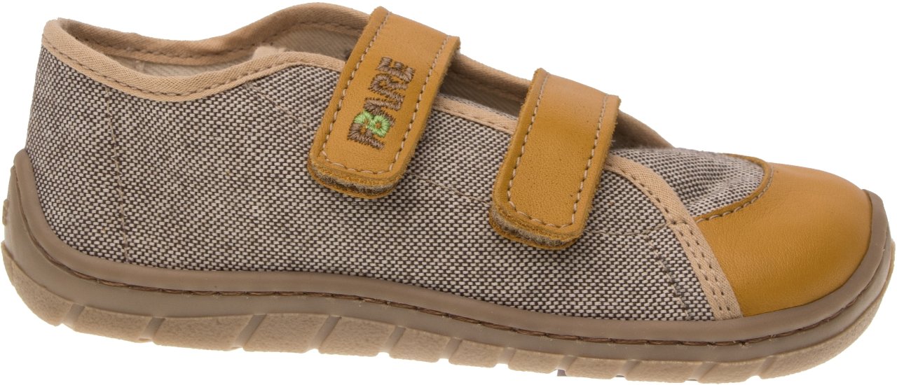 Textilní štróblovaná nízká obuv se zapínáním na suchý zip. Našívací (štróblovaná) stélka umožňuje lepší ohyb boty. Vrchový materiál: textil s usní na špici. Podšívka: bez podšívky. Podešev je vyrobena z termokaučuku, který je velmi flexibilní příčně, ale i podélně.