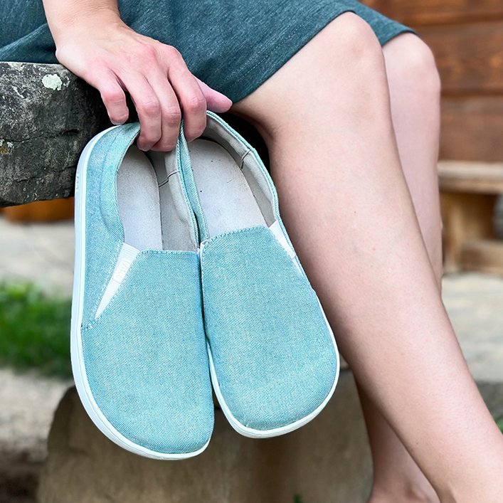 Nazouvací nízká štróblovaná obuv, na gumičku. Našívací (štróblovaná) stélka umožňuje lepší ohyb boty. Vrchový materiál: textil. Podšívka: textilní materiál s výbornými sacími schopnostmi. Podešev je vyrobena z termokaučuku, tudíž je podešev flexibilní ve všech směrech.