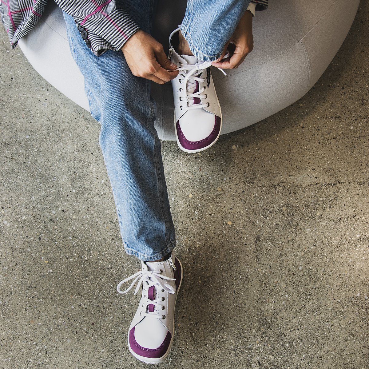 Kotníková celoroční barefoot obuv řady B je navržena pro každodenní nošení, především při pohybu ve městě. Kotníkový střih poskytuje větší jistotu při chůzi a zároveň zachovává lehkost a volnost pohybu typickou pro barefoot obuv.