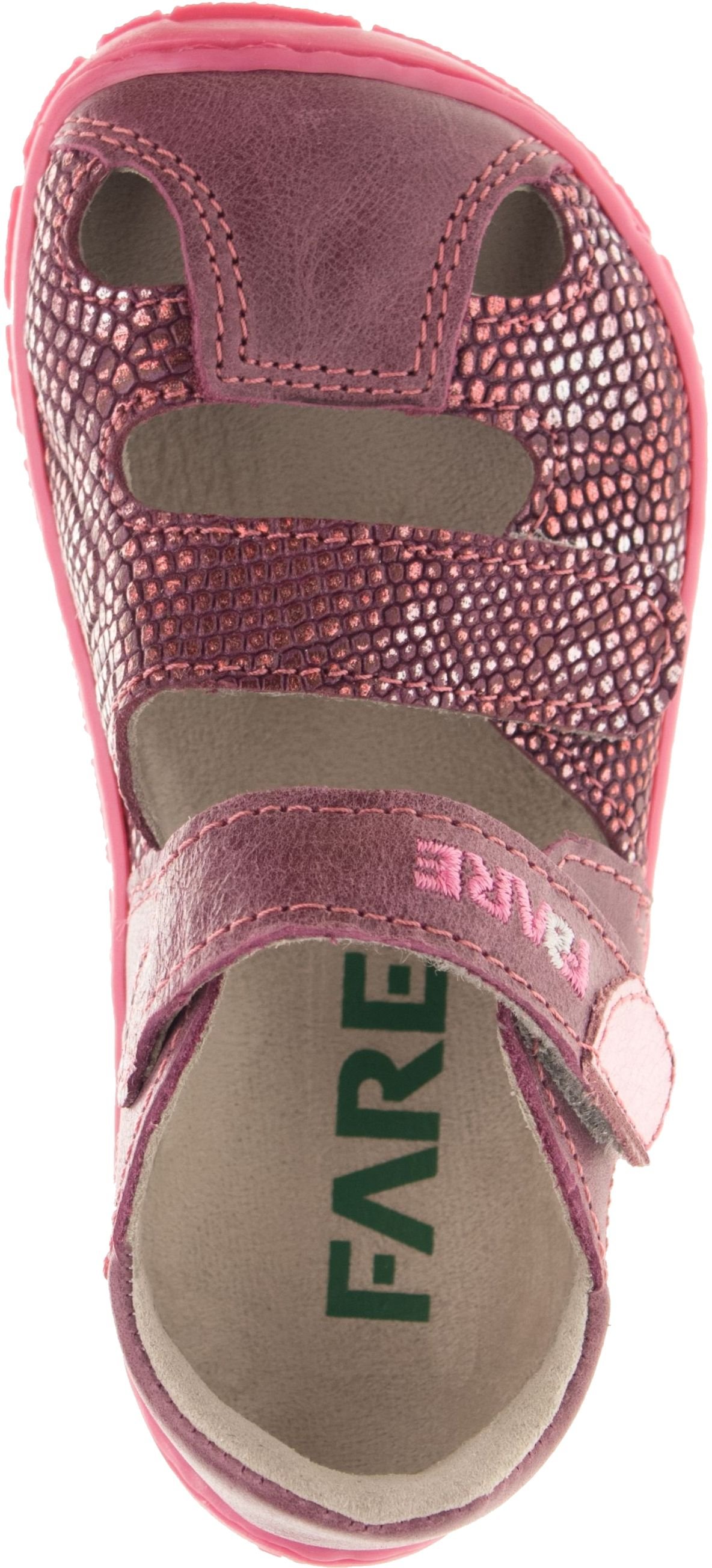 Dětské kožené sandály FARE BARE TRIPOLIS ve vínové barvě. Krásné, lehké a praktické barefoot sandály pro aktivní chůzi. Podešev ohebná příčně i podélně. Vhodné pro široká chodidla typu "ploutvička" vhodná i pro dominantní palec. Snadné zapínání pásky na suchý zip. Sandálka TRIPOLIS je vysoce flexibilní, pohodlná, zajišťuje přirozený pohyb chodidla. Svršek je z kvalitní kůže, podešev je z měkkého termokaučuku, který je ohebný jak příčně, tak podélně. Tyto dětské sandály FARE BARE kombinují komfort, volnost pohybu a barefoot principy, čímž poskytují ideální obuv pro každodenní nošení.